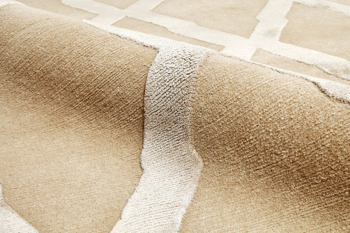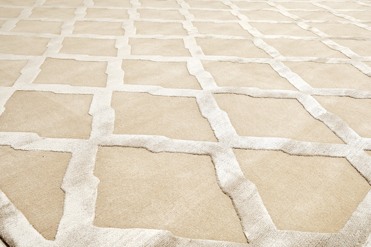 Крупные рисунки в виде линий и фигур на фактурной поверхности ковра превращаются в выразительные композиции. Они акцентируют на себе внимание и добавляют динамики в современный интерьер. Комбинации разных фигур и повторяющийся орнамент задают ритмическую основу пространству, привносят в него оригинальные оптические иллюзии.