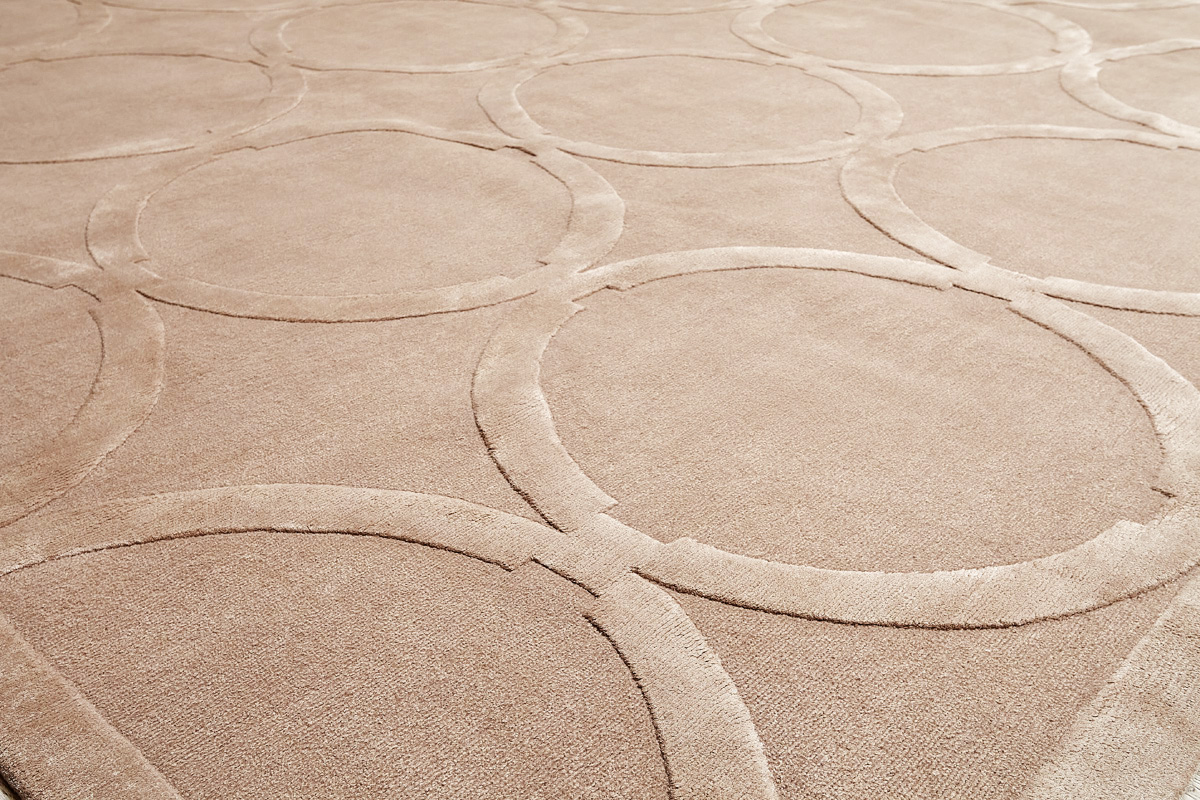 Крупные рисунки в виде линий и фигур на фактурной поверхности ковра превращаются в выразительные композиции. Они акцентируют на себе внимание и добавляют динамики в современный интерьер. Комбинации разных фигур и повторяющийся орнамент задают ритмическую основу пространству, привносят в него оригинальные оптические иллюзии.