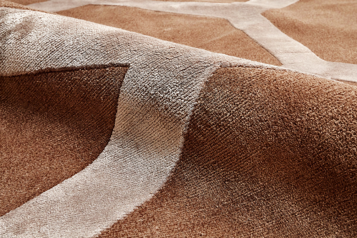 Крупные рисунки в виде линий и фигур на фактурной поверхности ковра превращаются в выразительные композиции. Они акцентируют на себе внимание и добавляют динамики в современный интерьер. Комбинации разных фигур и повторяющийся орнамент задают ритмическую основу пространству, привносят в него оригинальные оптические иллюзии.