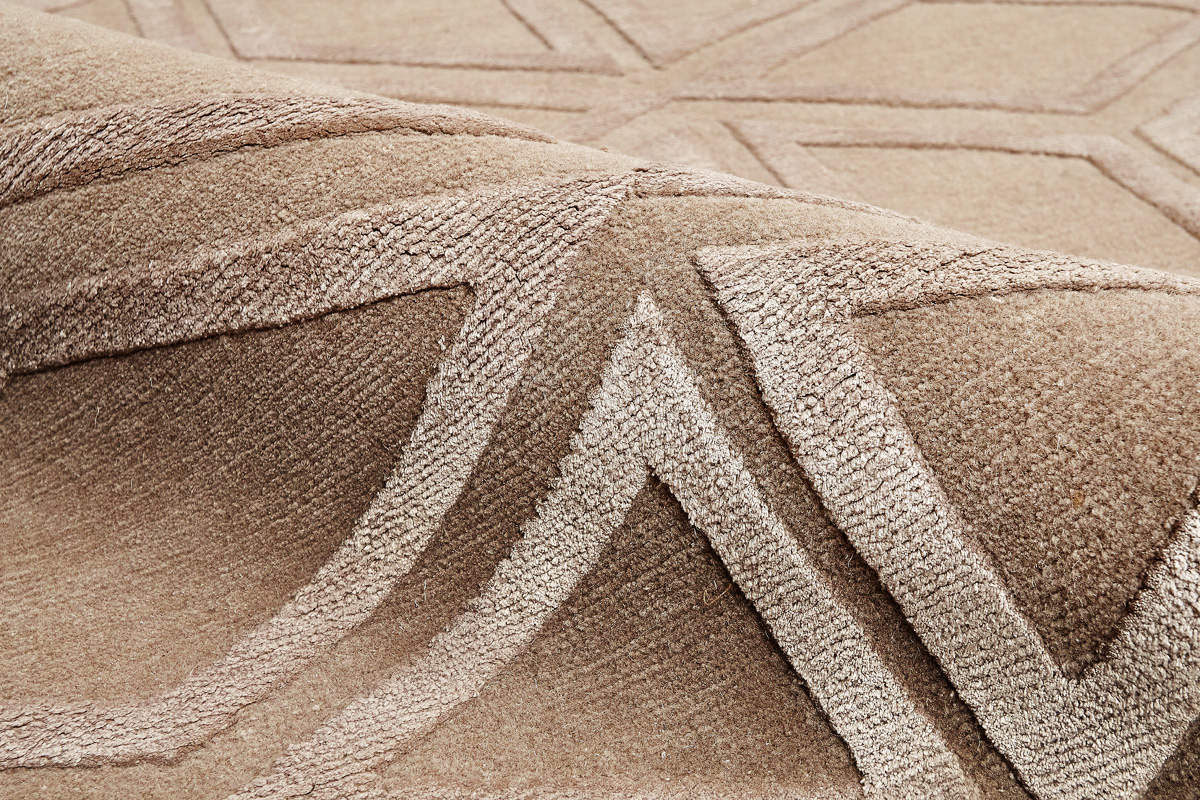 Крупные рисунки в виде линий и фигур на фактурной поверхности ковра превращаются в выразительные композиции. Они акцентируют на себе внимание и добавляют динамики в современный интерьер. Комбинации разных фигур и повторяющийся орнамент задают ритмическую основу пространству, привносят в него оригинальные оптические иллюзии.