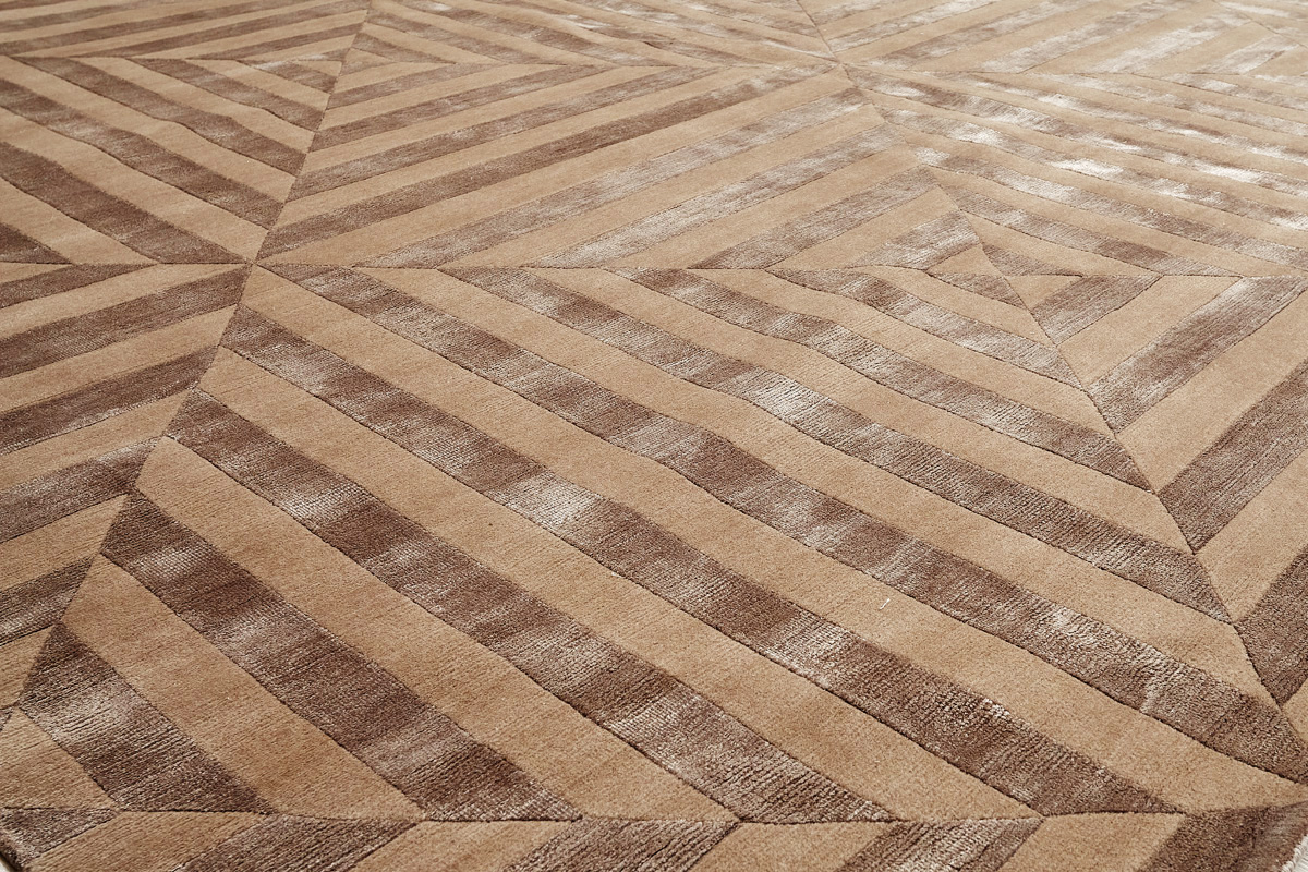 Крупные рисунки в виде линий и фигур на фактурной поверхности ковра превращаются в выразительные композиции. Они акцентируют на себе внимание и добавляют динамики в современный интерьер. Комбинации разных фигур и повторяющийся орнамент задают ритмическую основу пространству, привносят в него оригинальные оптические иллюзии.