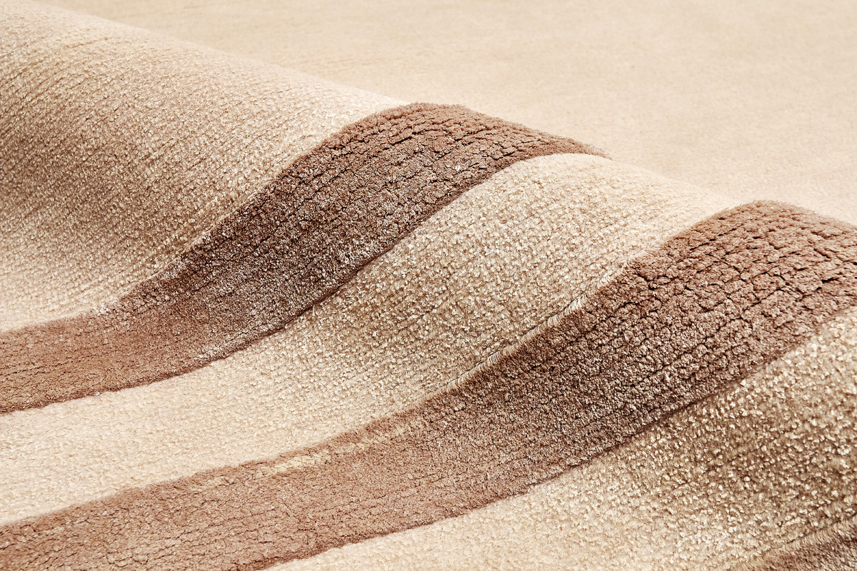 Крупные рисунки в виде линий и фигур на фактурной поверхности ковра превращаются в выразительные композиции. Они акцентируют на себе внимание и добавляют динамики в современный интерьер. Комбинации разных фигур и повторяющийся орнамент задают ритмическую основу пространству, привносят в него оригинальные оптические иллюзии.