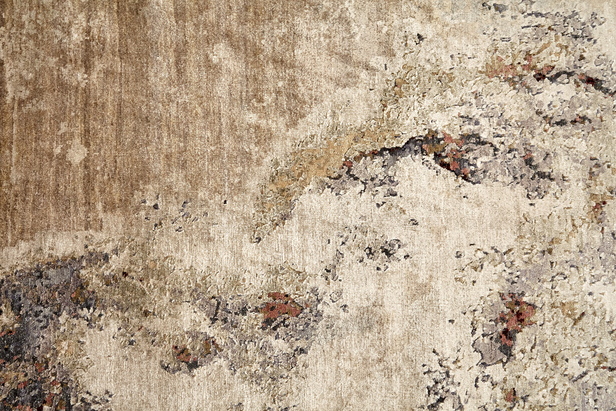 Дизайн ковров напоминает современные полотна художников-абстракционистов и производит столь же яркое и незабываемое впечатление в интерьере. Живописный эффект и необычная фактура зависят от выбора материала: натуральной шерсти, шёлка и от их сочетаний друг с другом. Ковры ткутся вручную в лучших мастерских Индии и Пакистана.