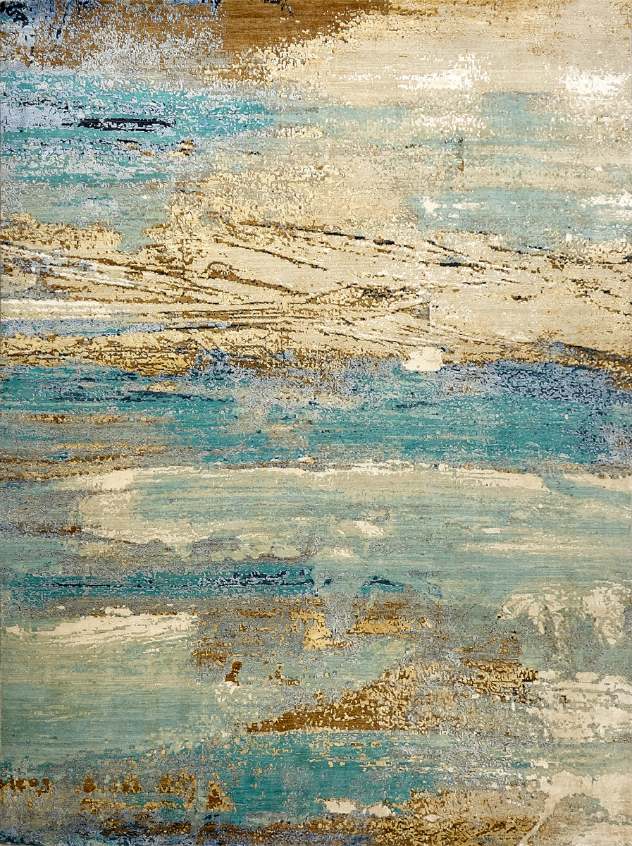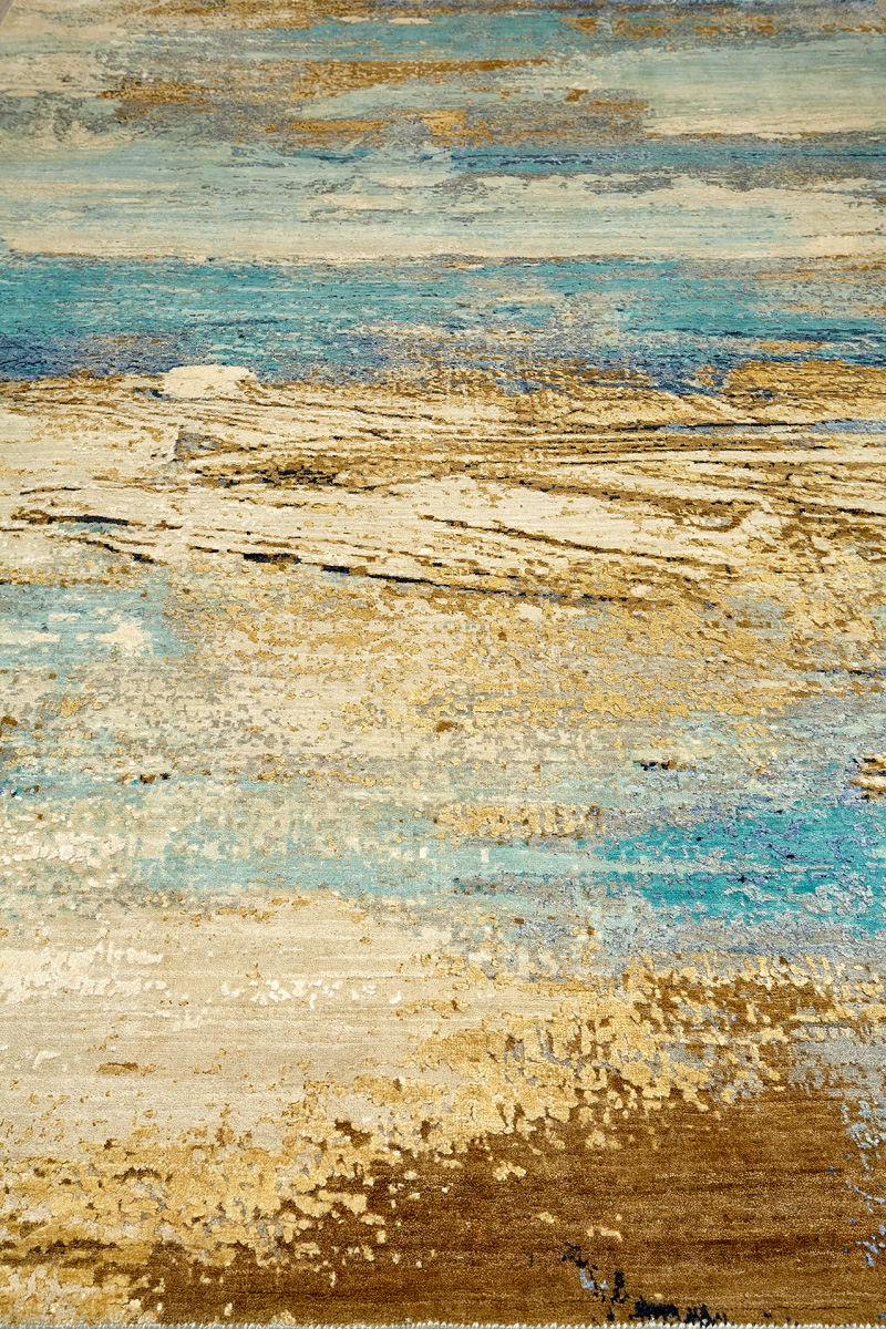 Дизайн ковров напоминает современные полотна художников-абстракционистов и производит столь же яркое и незабываемое впечатление в интерьере. Живописный эффект и необычная фактура зависят от выбора материала: натуральной шерсти, шёлка и от их сочетаний друг с другом. Ковры ткутся вручную в лучших мастерских Индии и Пакистана.