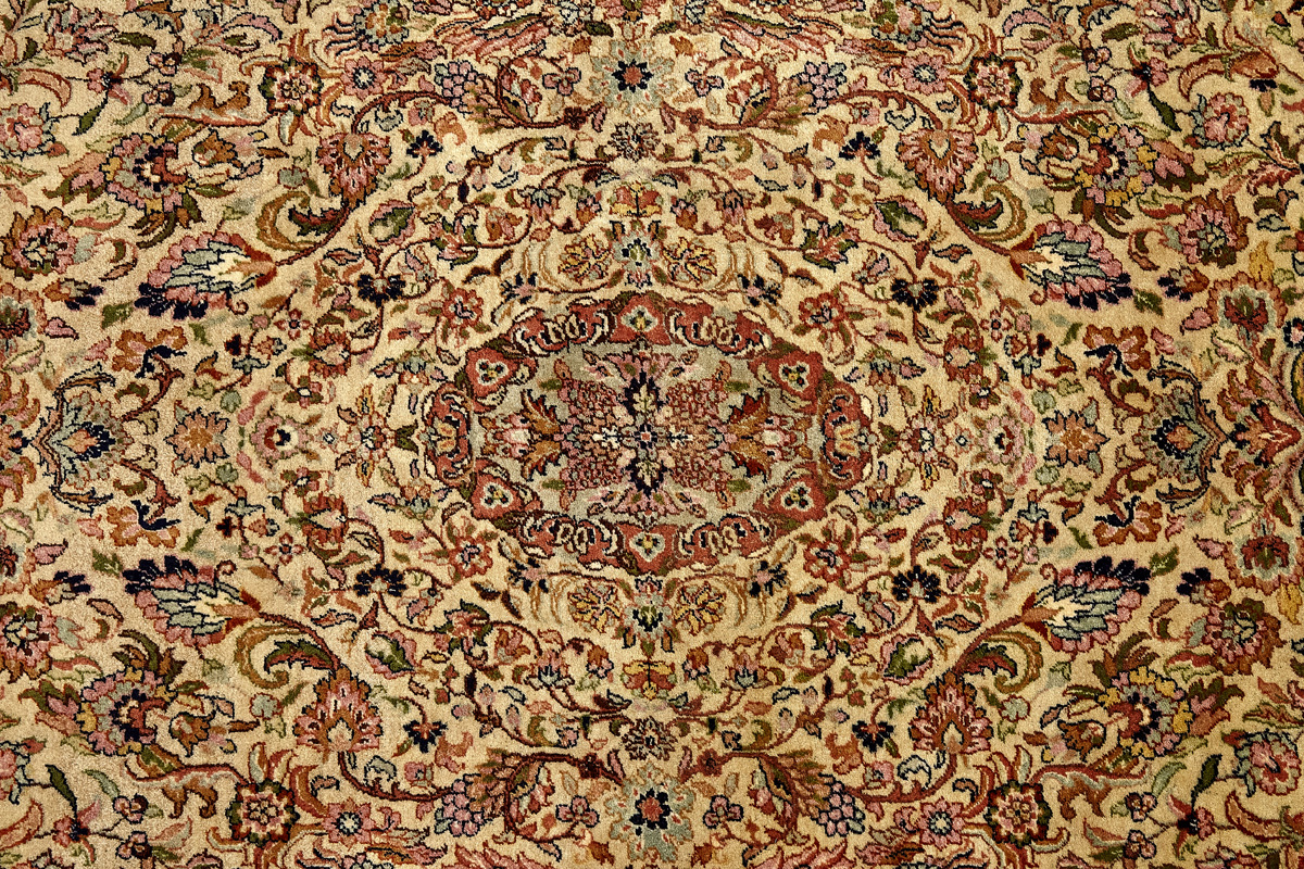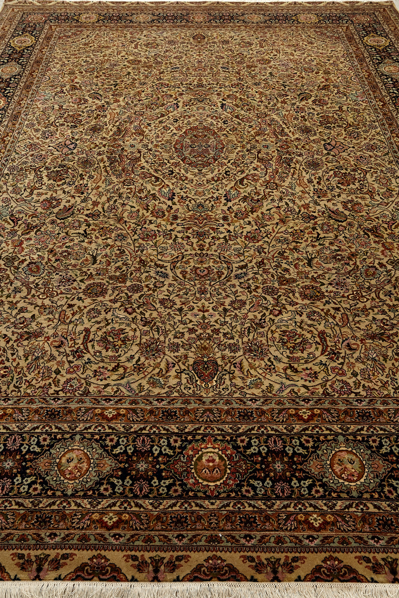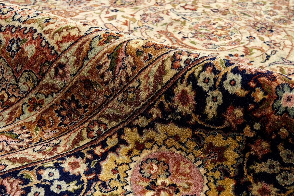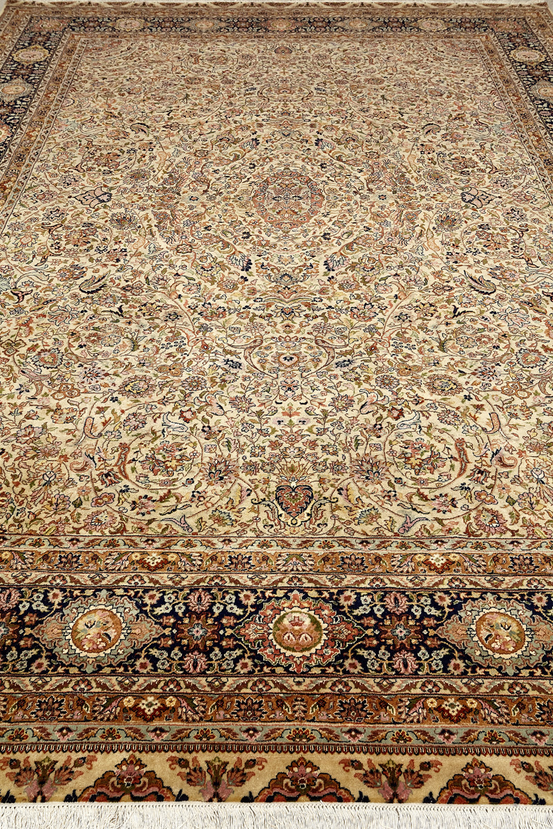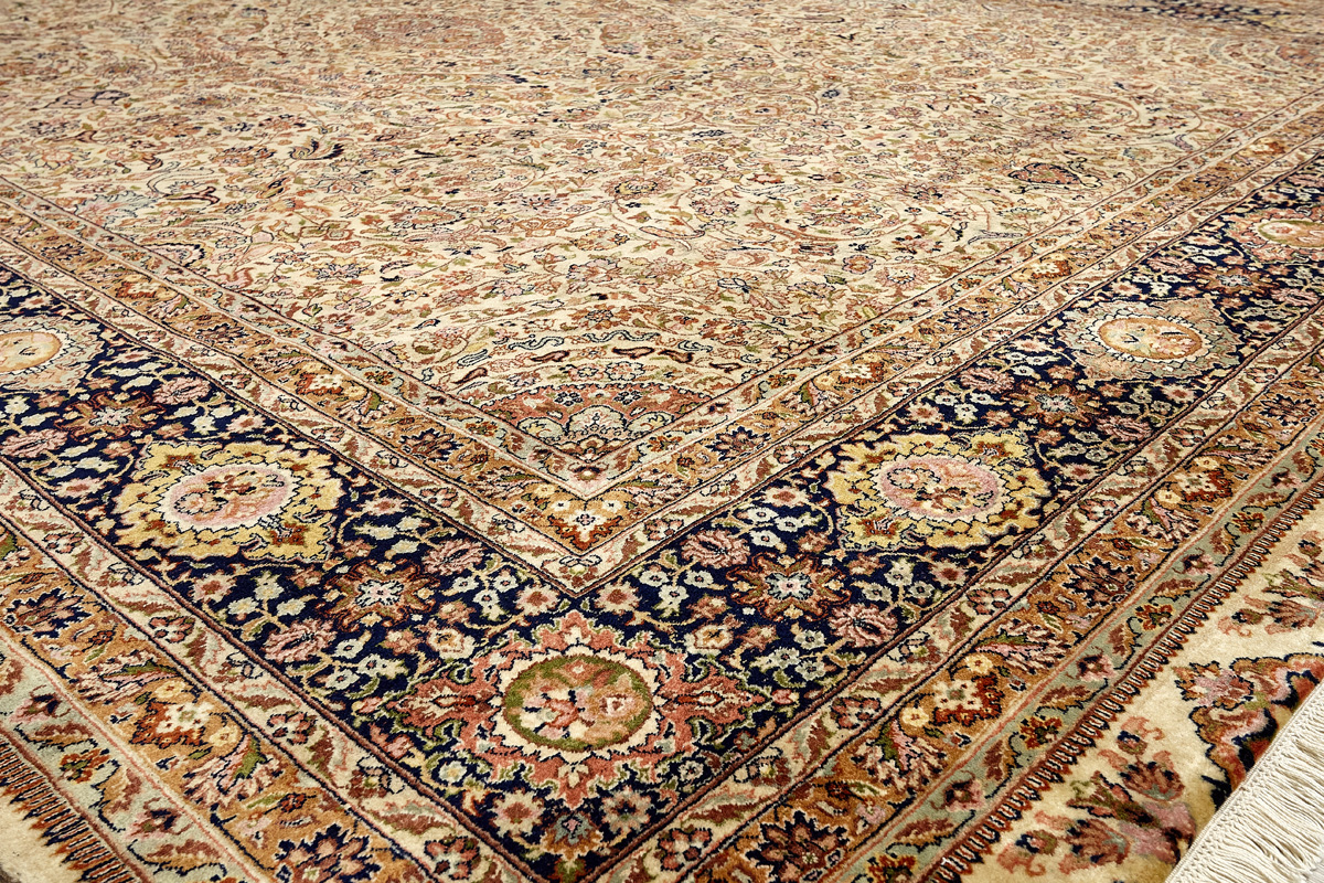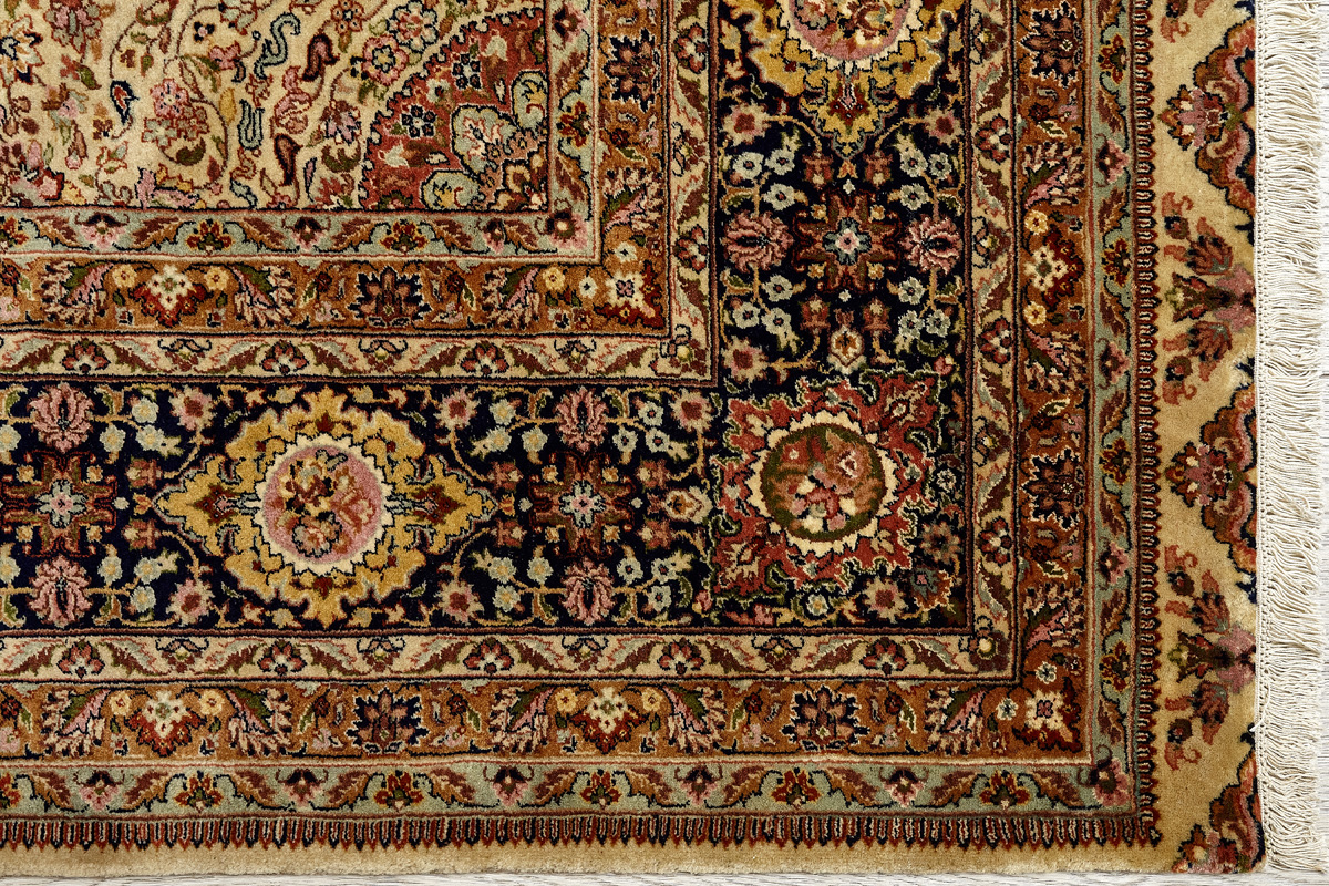 Более пяти веков назад в городе Агра зародилась знаменитая индийская школа ковроткачества, прославившаяся не меньше, чем расположенный здесь же Тадж-Махал. Мощное персидское влияние, помноженное на местный колорит, привело к появлению оригинальных орнаментов с богатыми растительными узорами — причудливым цветам, ветвям и листьям, разбросанным по всему полю ковра.