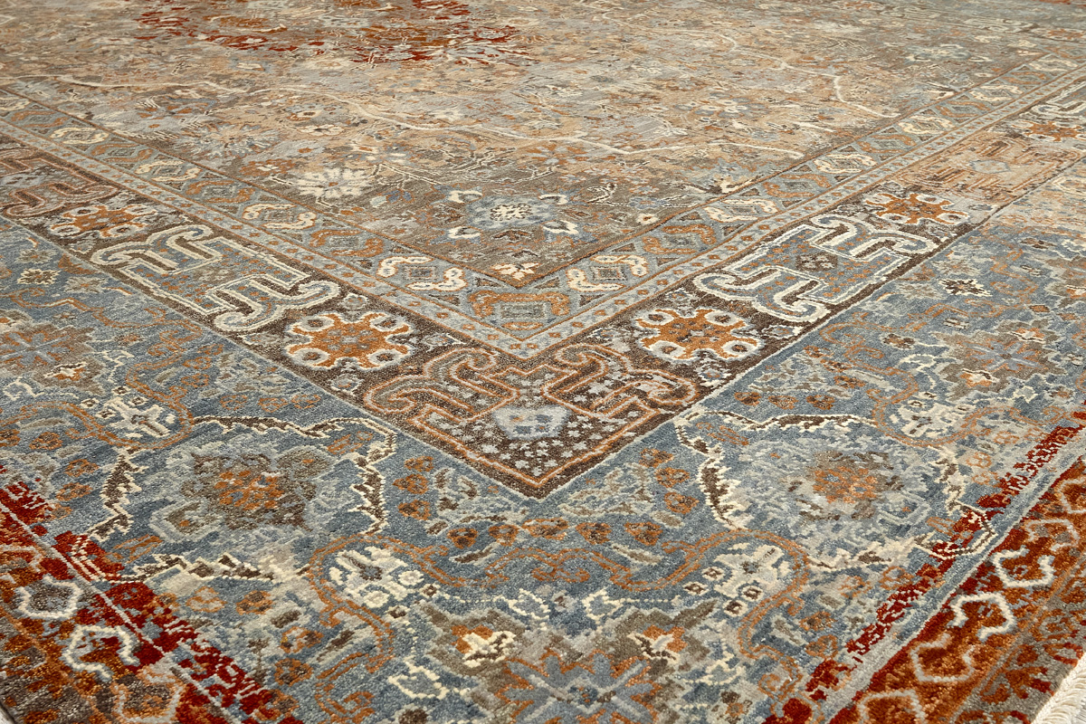 Родина этих ковров Индия и Пакистан. Чтобы создать такое произведение искусства у мастеров уходит от одного года до двух лет. Плотность ковров, в зависимости от размера, составляет от 150 000 до 400 000 узлов на квадратный метр.