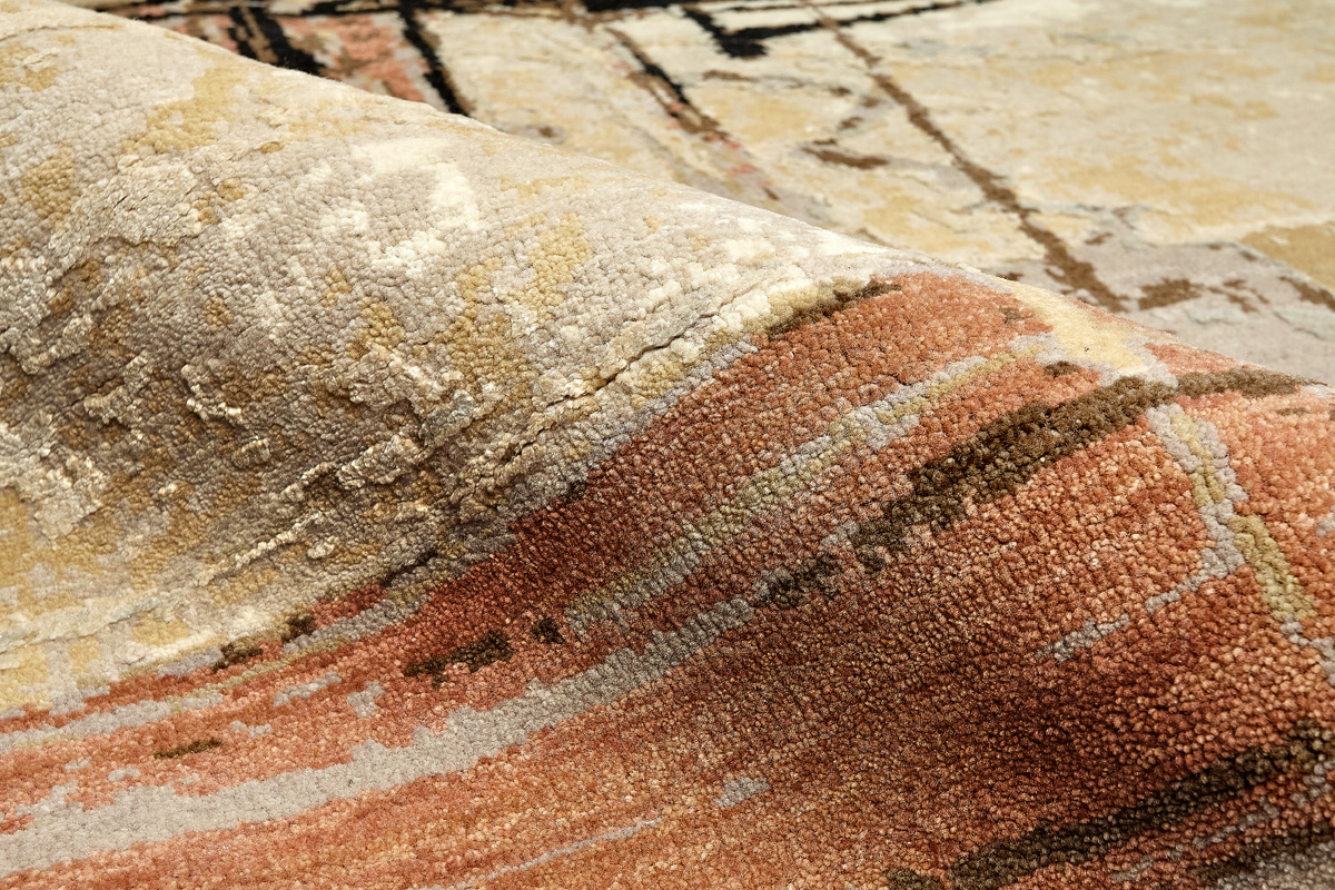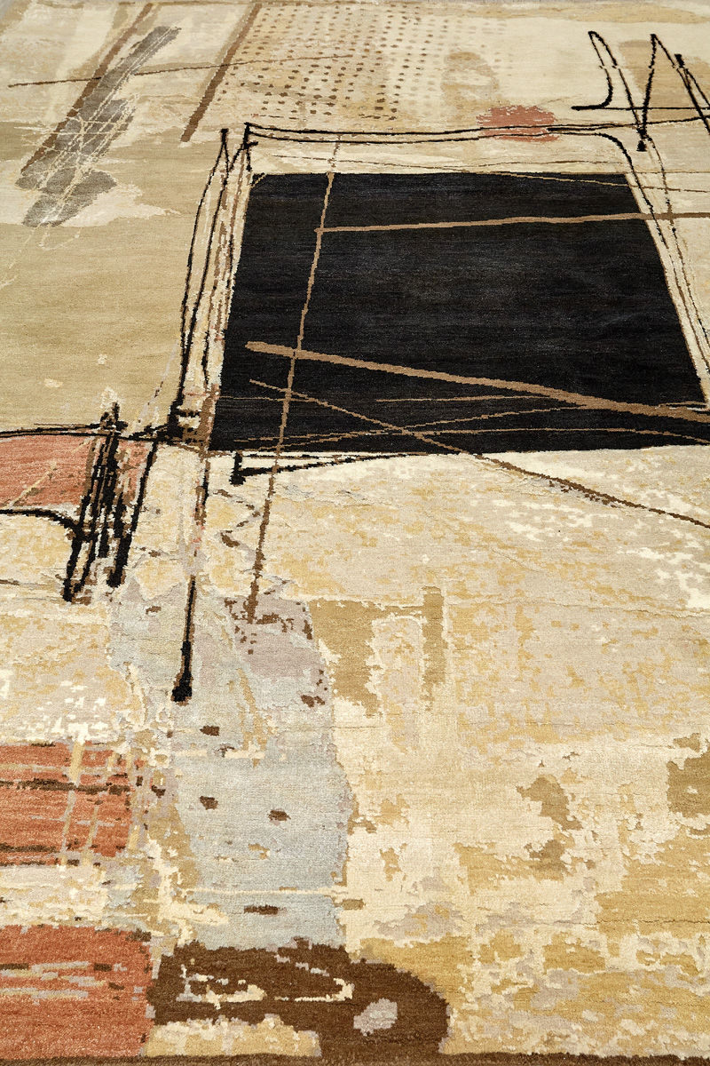 Дизайн ковров напоминает современные полотна художников-абстракционистов и производит столь же яркое и незабываемое впечатление в интерьере. Живописный эффект и необычная фактура зависят от выбора материала: натуральной шерсти, шёлка и от их сочетаний друг с другом. Ковры ткутся вручную в лучших мастерских Индии и Пакистана.