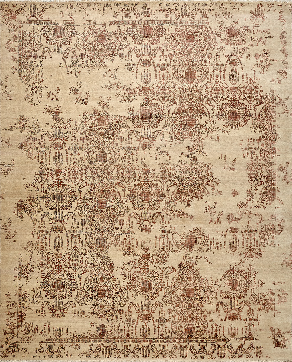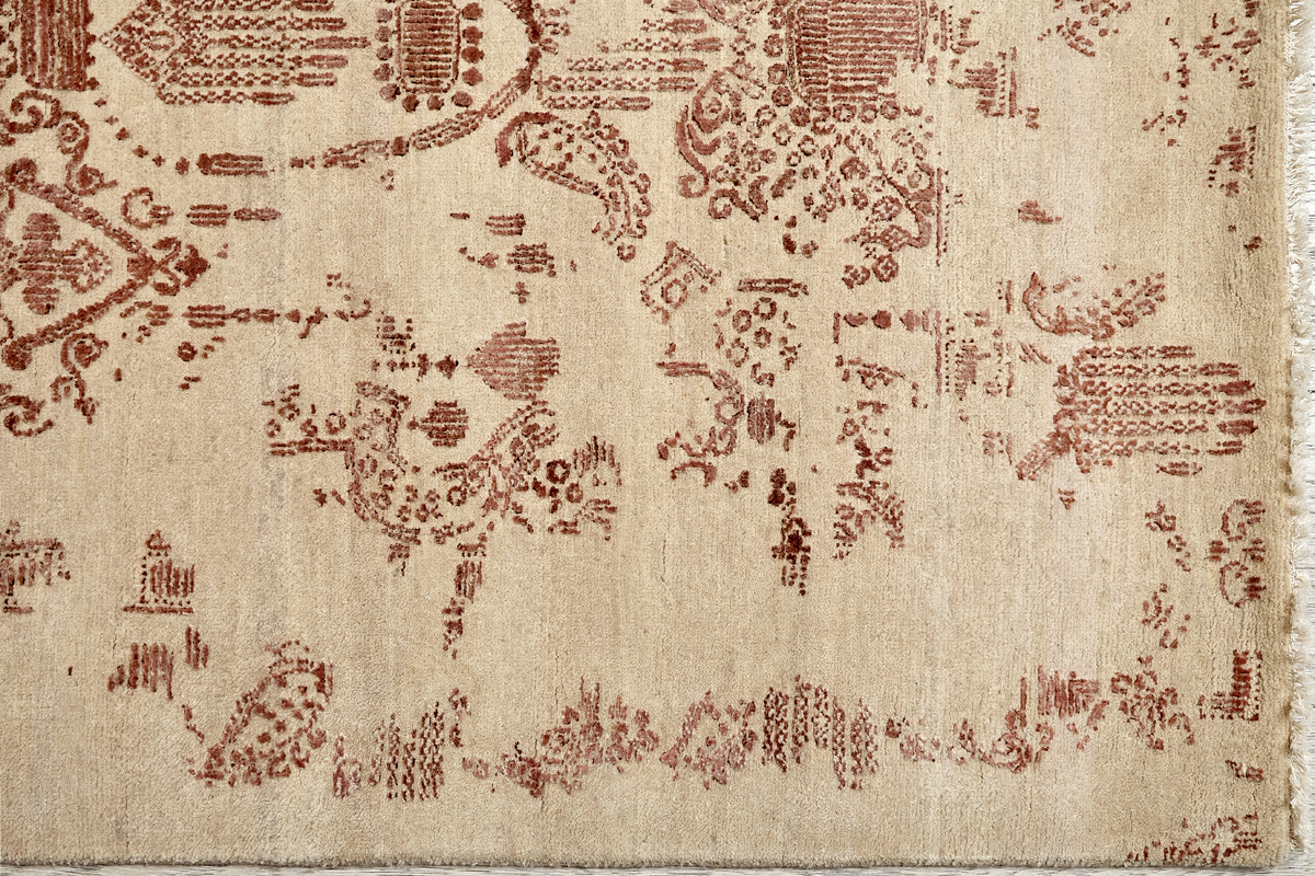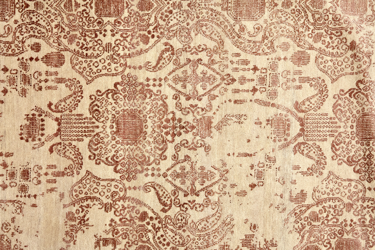 Время и природа — два главных стержня. Впечатление такое, что краски словно стёрлись, а если они и сохраняют яркость, то рисунок сохранился не весь, какие‑то фрагменты утрачены — такова типология этого столь актуального сегодня ковра ручной работы из коллекции Pearl.