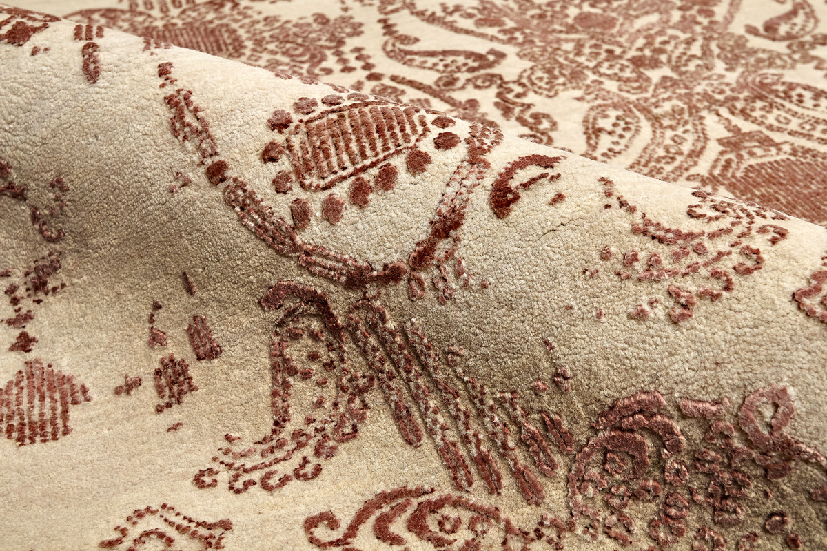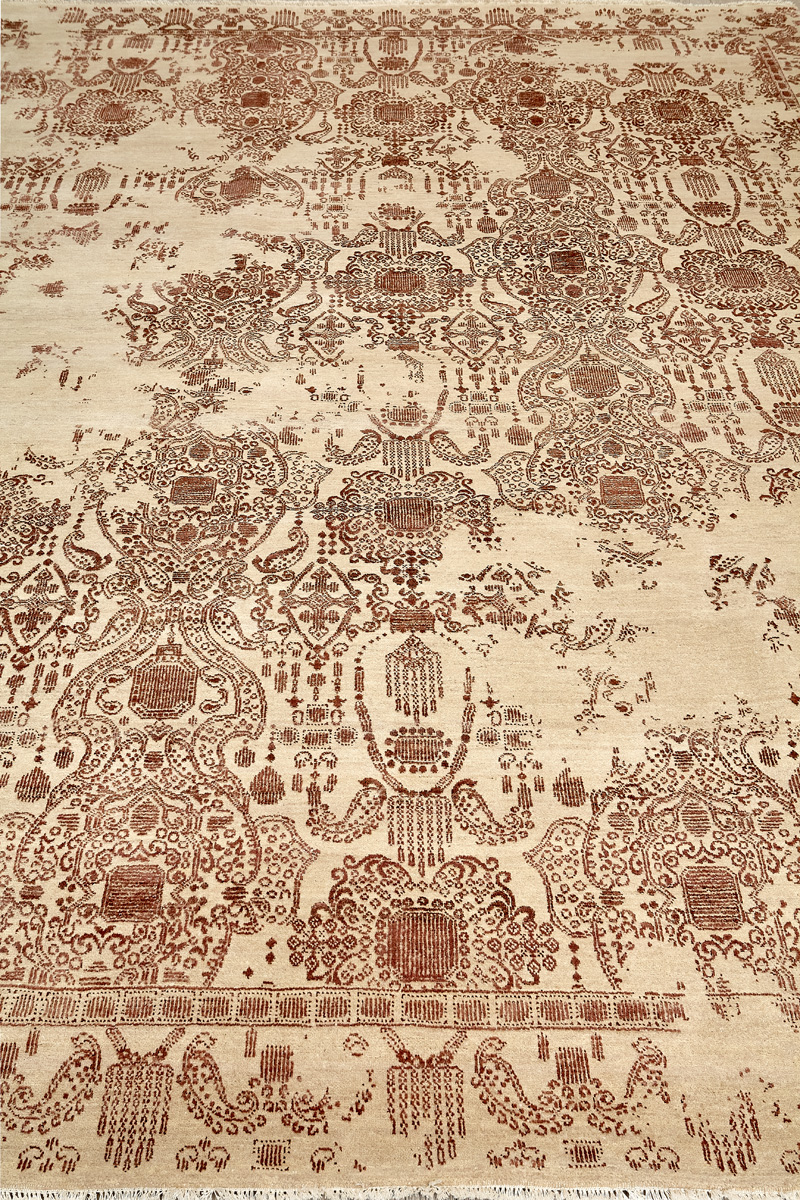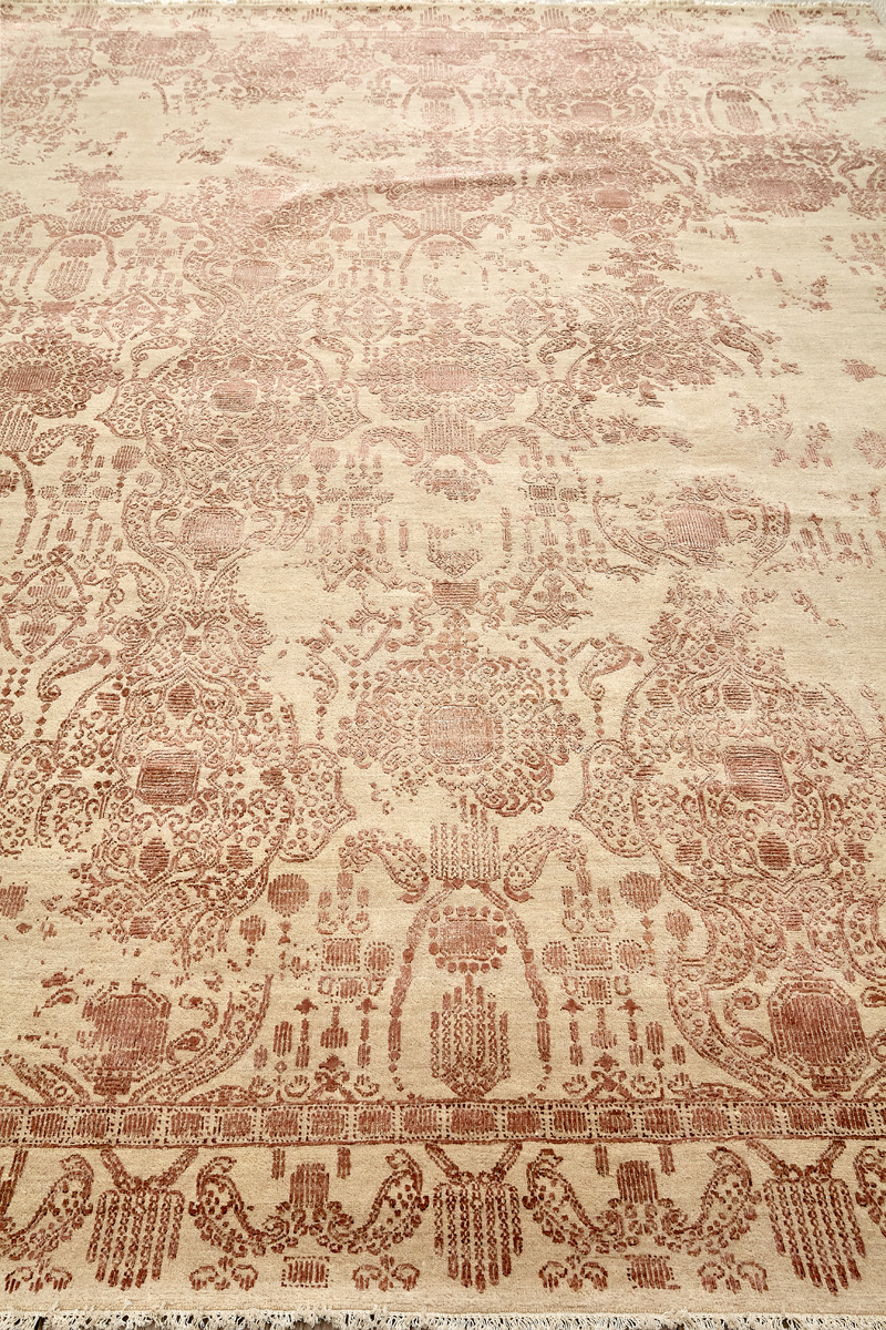 Родина этих ковров Индия. Чтобы создать такое произведение искусства у мастеров уходит от одного года до двух лет. Плотность ковров, в зависимости от размера, составляет от 250 000 до 400 000 узлов на квадратный метр.