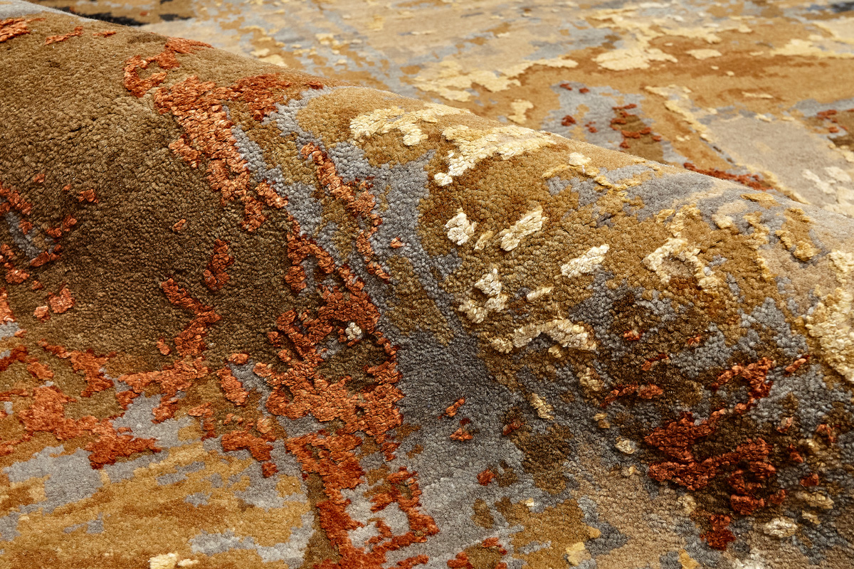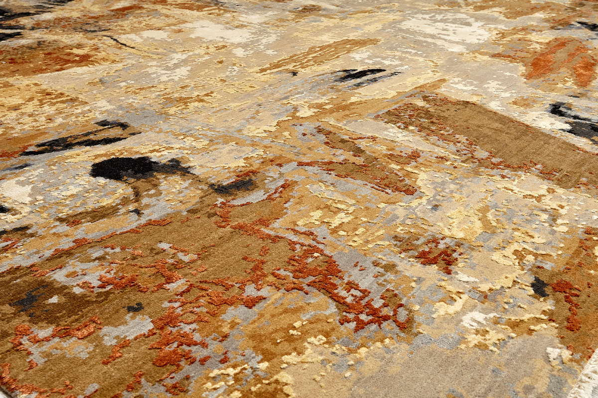 Дизайн ковров напоминает современные полотна художников-абстракционистов и производит столь же яркое и незабываемое впечатление в интерьере. Живописный эффект и необычная фактура зависят от выбора материала: натуральной шерсти, шёлка и от их сочетаний друг с другом. Ковры ткутся вручную в лучших мастерских Индии и Пакистана.