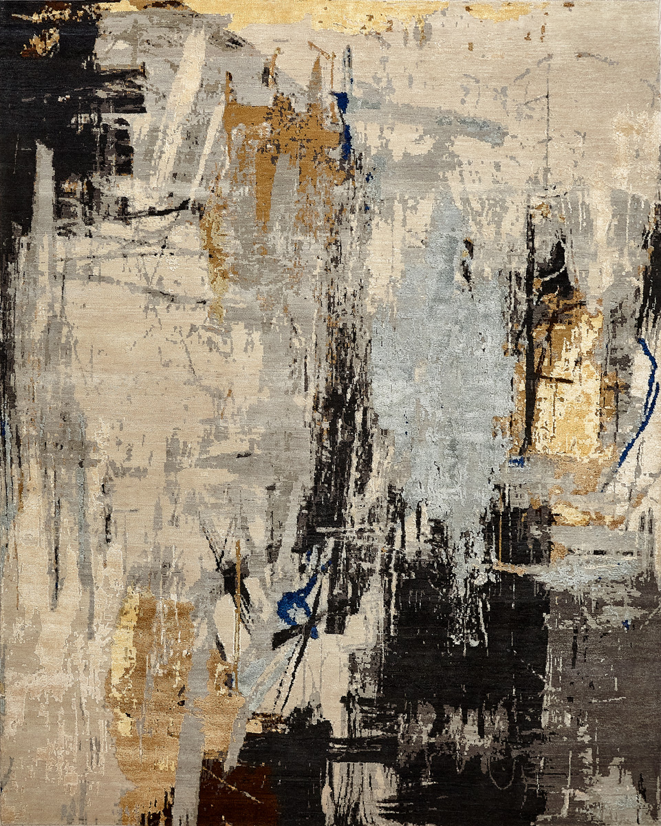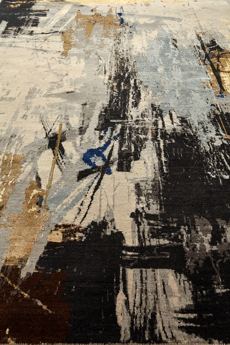 Дизайн ковров напоминает современные полотна художников-абстракционистов и производит столь же яркое и незабываемое впечатление в интерьере. Живописный эффект и необычная фактура зависят от выбора материала: натуральной шерсти, шёлка и от их сочетаний друг с другом. Ковры ткутся вручную в лучших мастерских Индии и Пакистана.