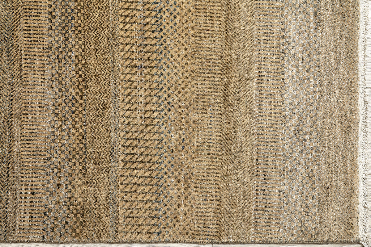 Дизайн ковров напоминает современные полотна художников-абстракционистов и производит столь же яркое и незабываемое впечатление в интерьере. Живописный эффект и необычная фактура зависят от выбора материала: натуральной шерсти, шёлка и от их сочетаний друг с другом. Ковры ткутся вручную в лучших мастерских Индии и Пакистана.