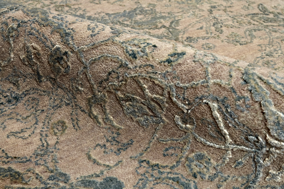 Время и природа — два главных стержня. Впечатление такое, что краски словно стёрлись, а если они и сохраняют яркость, то рисунок сохранился не весь, какие‑то фрагменты утрачены — такова типология этого столь актуального сегодня ковра ручной работы из коллекции illusion.