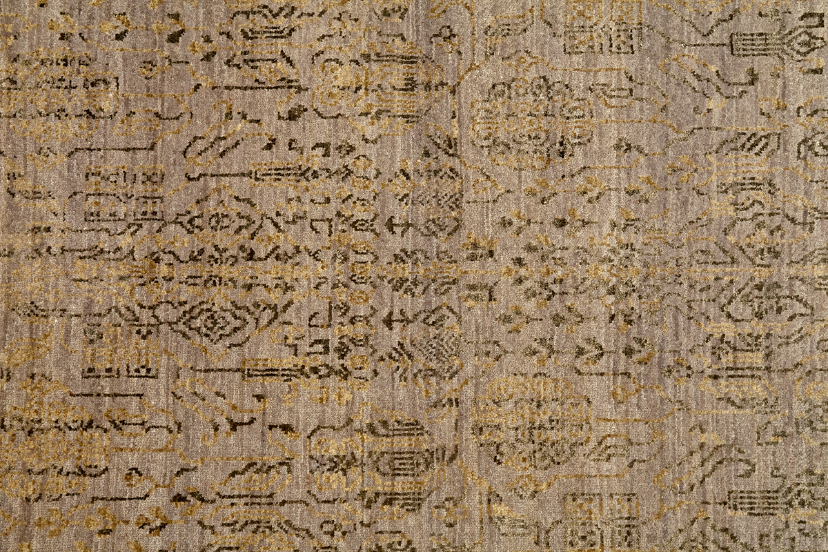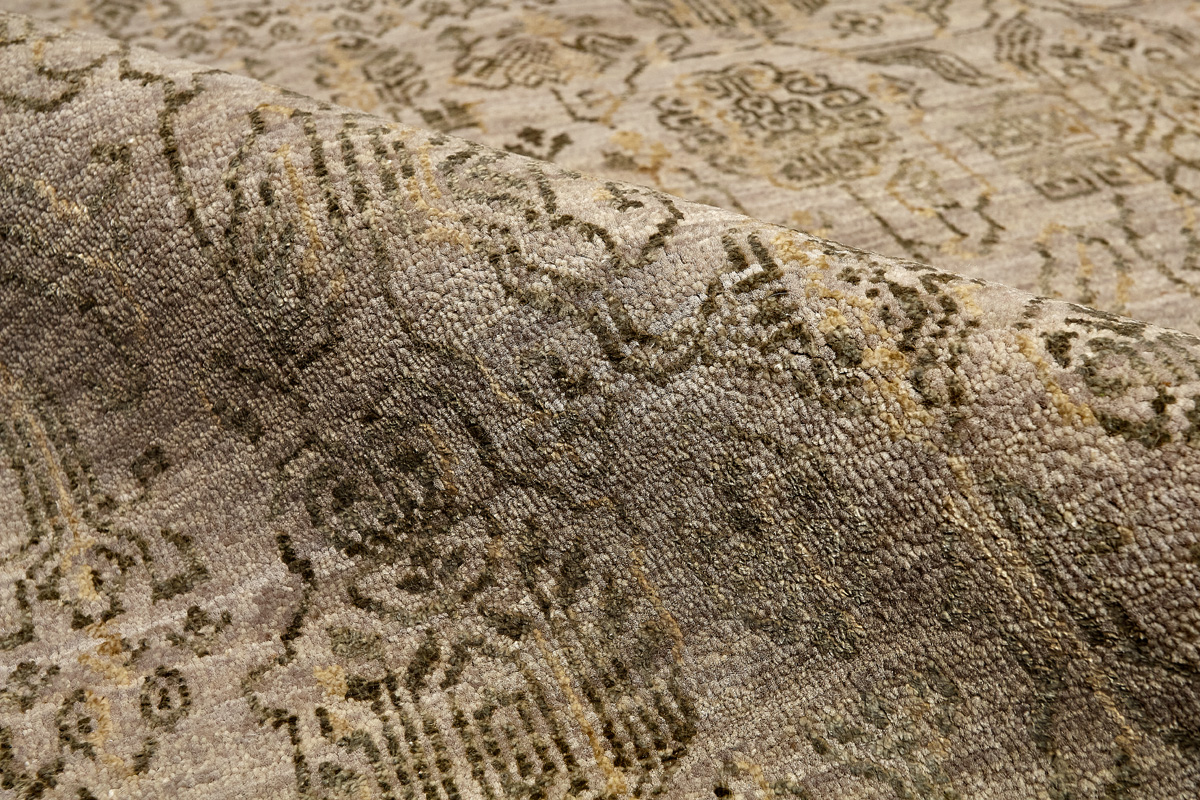 Время и природа — два главных стержня. Впечатление такое, что краски словно стёрлись, а если они и сохраняют яркость, то рисунок сохранился не весь, какие‑то фрагменты утрачены — такова типология этого столь актуального сегодня ковра ручной работы из коллекции Pearl.