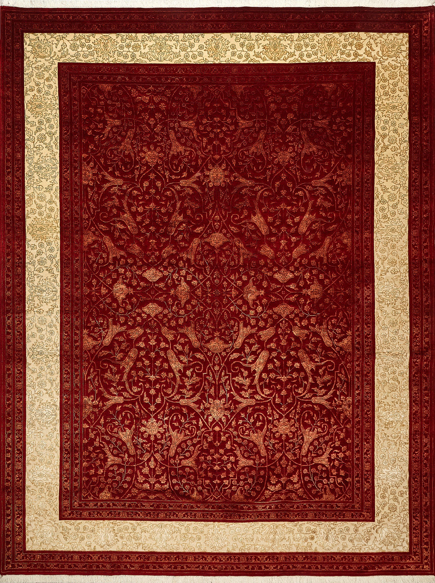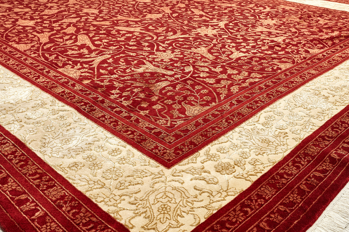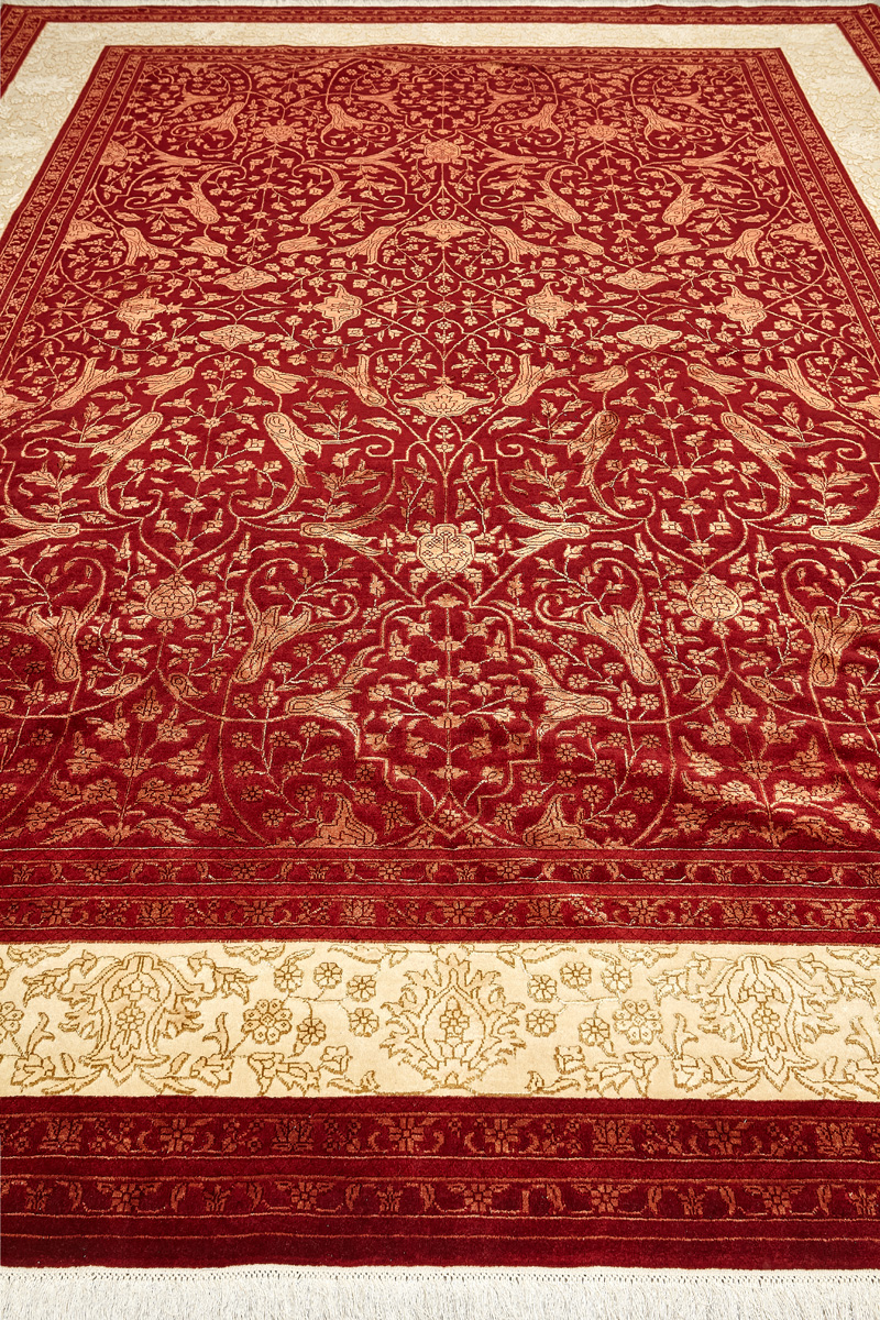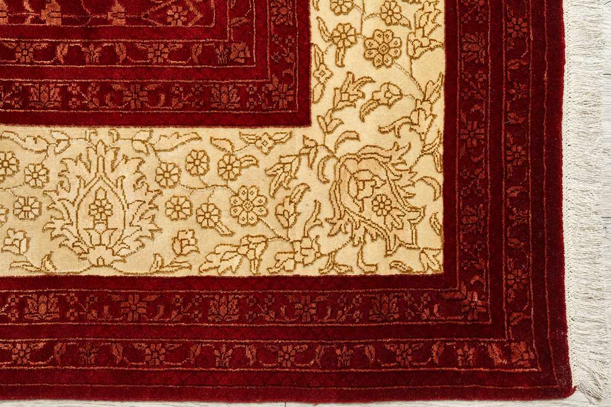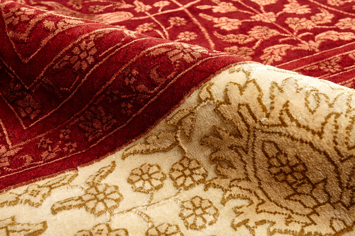 Более пяти веков назад в городе Агра зародилась знаменитая индийская школа ковроткачества, прославившаяся не меньше, чем расположенный здесь же Тадж-Махал. Мощное персидское влияние, помноженное на местный колорит, привело к появлению оригинальных орнаментов с богатыми растительными узорами — причудливым цветам, ветвям и листьям, разбросанным по всему полю ковра.