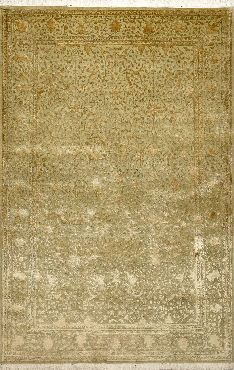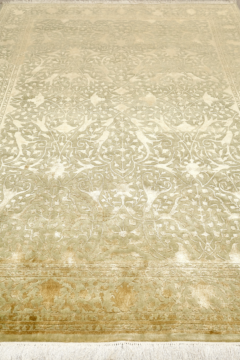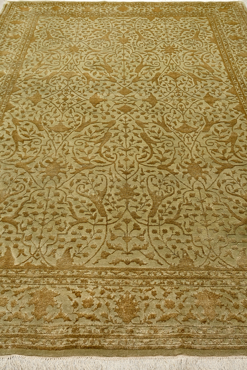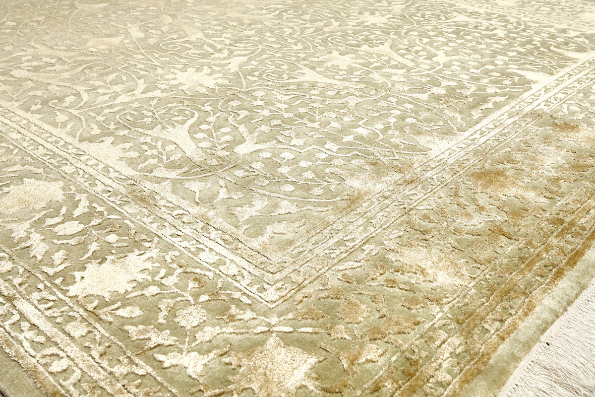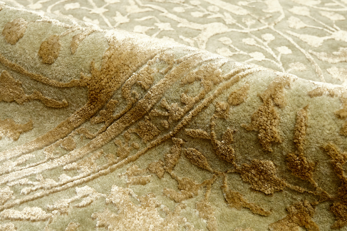 Каждый ковер в этой коллекции соткан вручную из шерсти и арт шёлка опытными индийскими мастерами.
