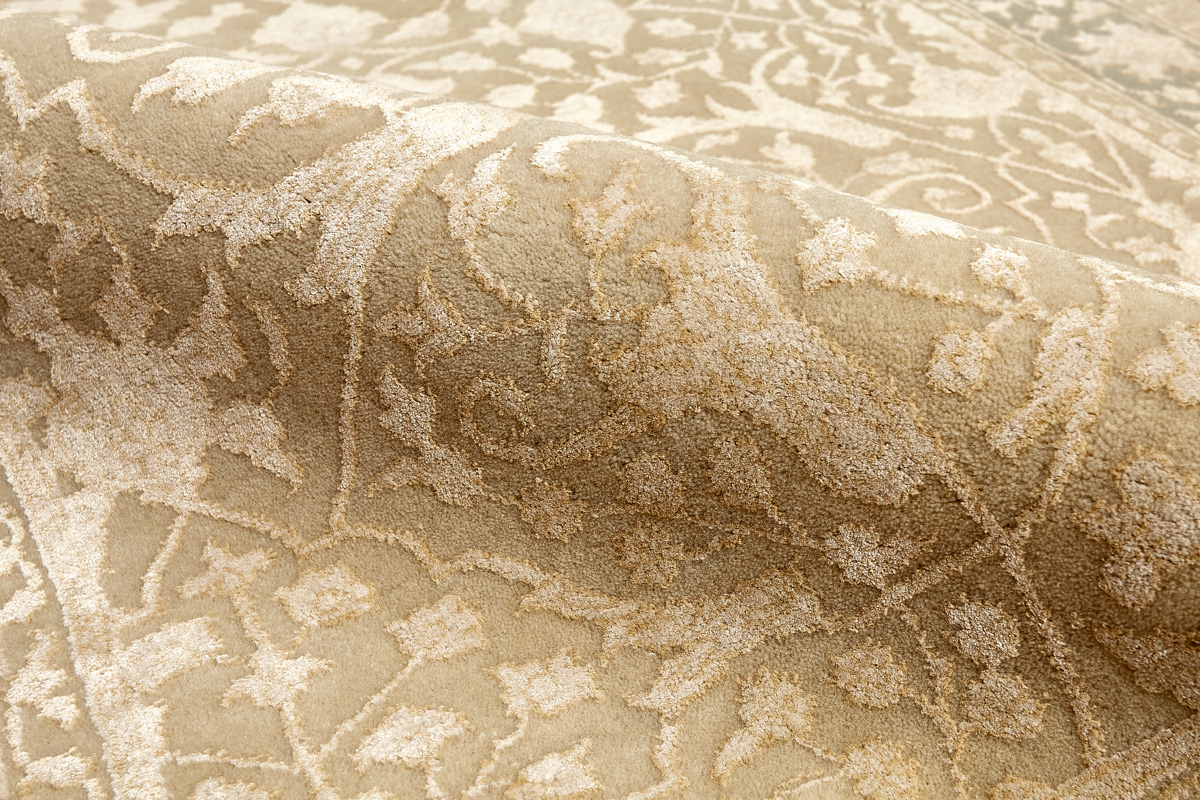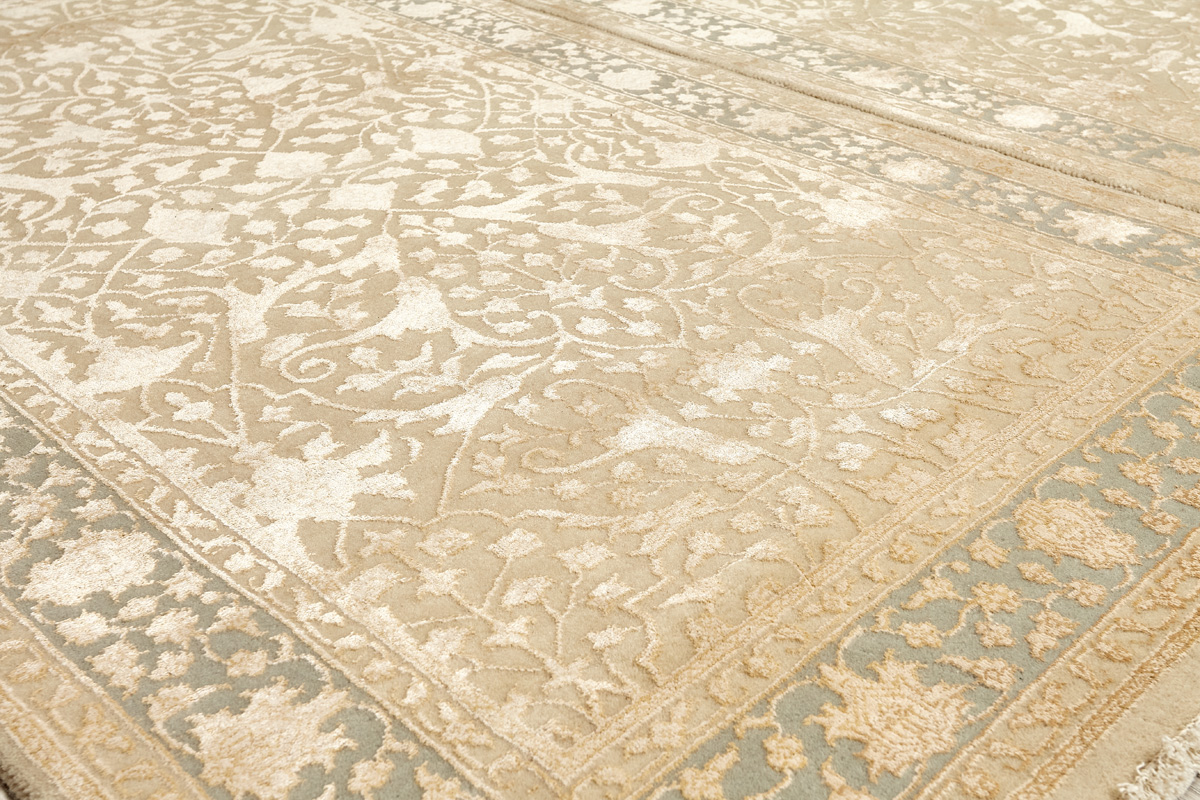Каждый ковер в этой коллекции соткан вручную из шерсти и арт шёлка опытными индийскими мастерами.
