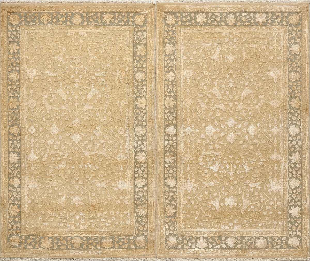 Более пяти веков назад в городе Агра зародилась знаменитая индийская школа ковроткачества, прославившаяся не меньше, чем расположенный здесь же Тадж-Махал. Мощное персидское влияние, помноженное на местный колорит, привело к появлению оригинальных орнаментов с богатыми растительными узорами — причудливым цветам, ветвям и листьям, разбросанным по всему полю ковра.