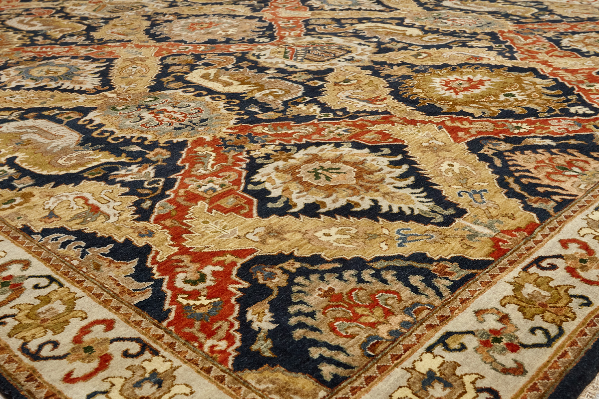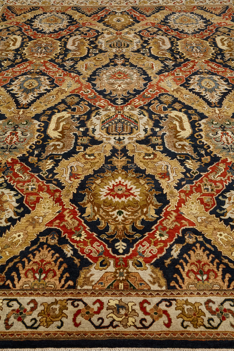 Более пяти веков назад в городе Агра зародилась знаменитая индийская школа ковроткачества, прославившаяся не меньше, чем расположенный здесь же Тадж-Махал. Мощное персидское влияние, помноженное на местный колорит, привело к появлению оригинальных орнаментов с богатыми растительными узорами — причудливым цветам, ветвям и листьям, разбросанным по всему полю ковра.