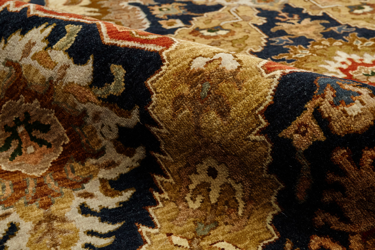 Каждый ковер в этой коллекции соткан вручную из шерсти и арт шёлка опытными индийскими мастерами.