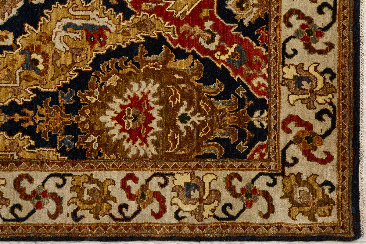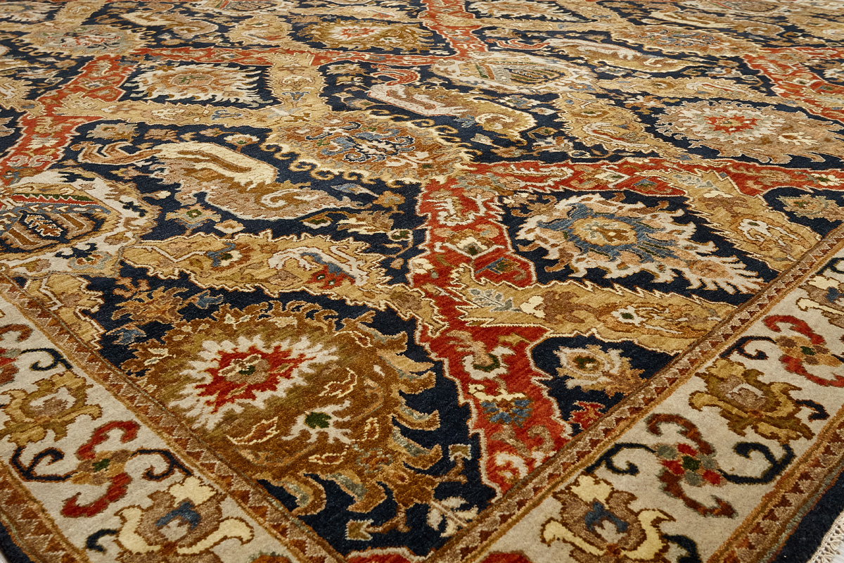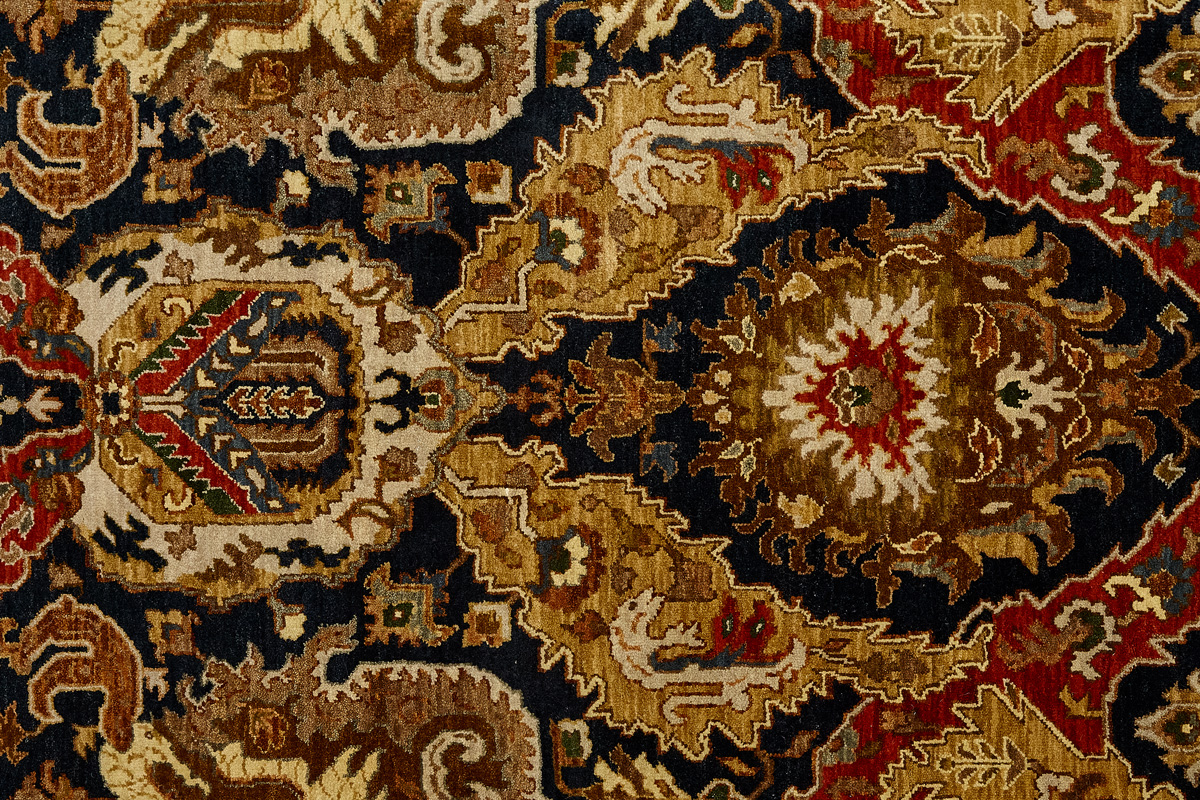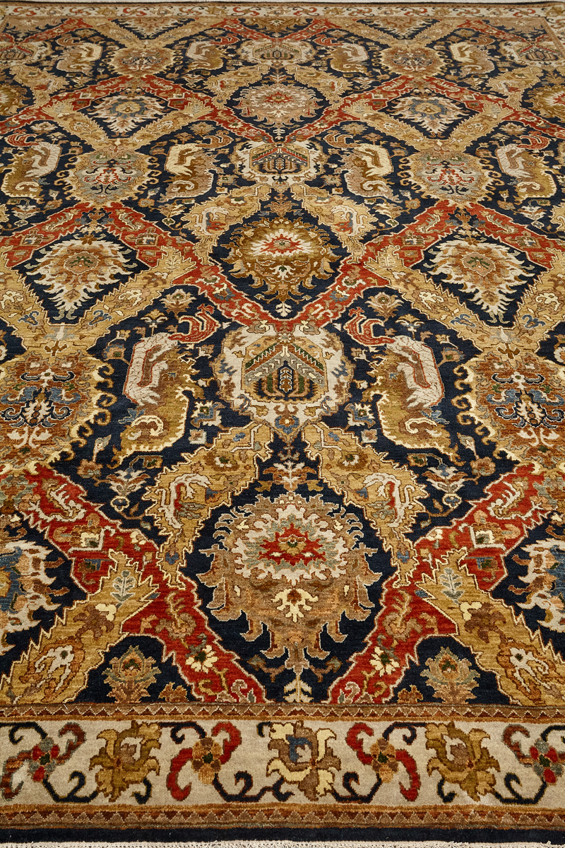 Более пяти веков назад в городе Агра зародилась знаменитая индийская школа ковроткачества, прославившаяся не меньше, чем расположенный здесь же Тадж-Махал. Мощное персидское влияние, помноженное на местный колорит, привело к появлению оригинальных орнаментов с богатыми растительными узорами — причудливым цветам, ветвям и листьям, разбросанным по всему полю ковра.