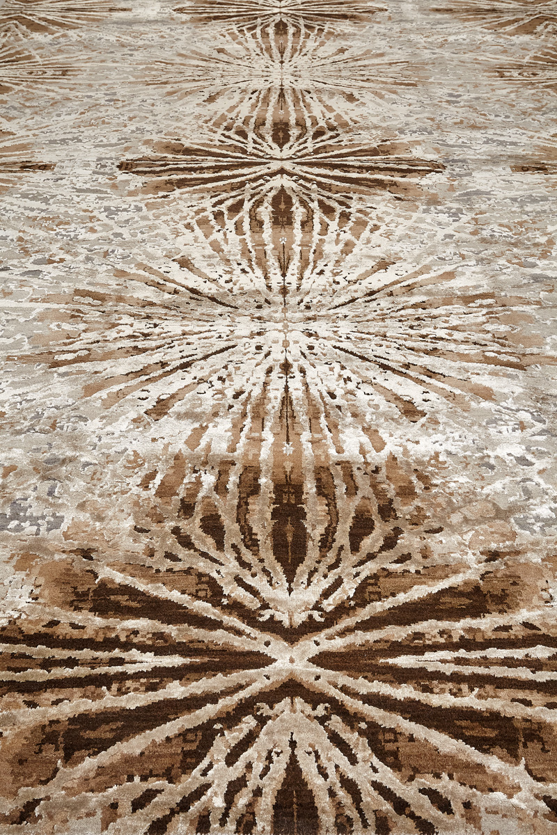 Дизайн ковров напоминает современные полотна художников-абстракционистов и производит столь же яркое и незабываемое впечатление в интерьере. Живописный эффект и необычная фактура зависят от выбора материала: натуральной шерсти, шёлка и от их сочетаний друг с другом. Ковры ткутся вручную в лучших мастерских Индии и Пакистана.