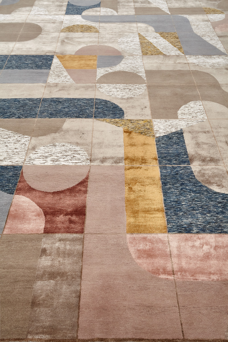 Крупные рисунки в виде линий и фигур на фактурной поверхности ковра превращаются в выразительные композиции. Они акцентируют на себе внимание и добавляют динамики в современный интерьер. Комбинации разных фигур и повторяющийся орнамент задают ритмическую основу пространству, привносят в него оригинальные оптические иллюзии.