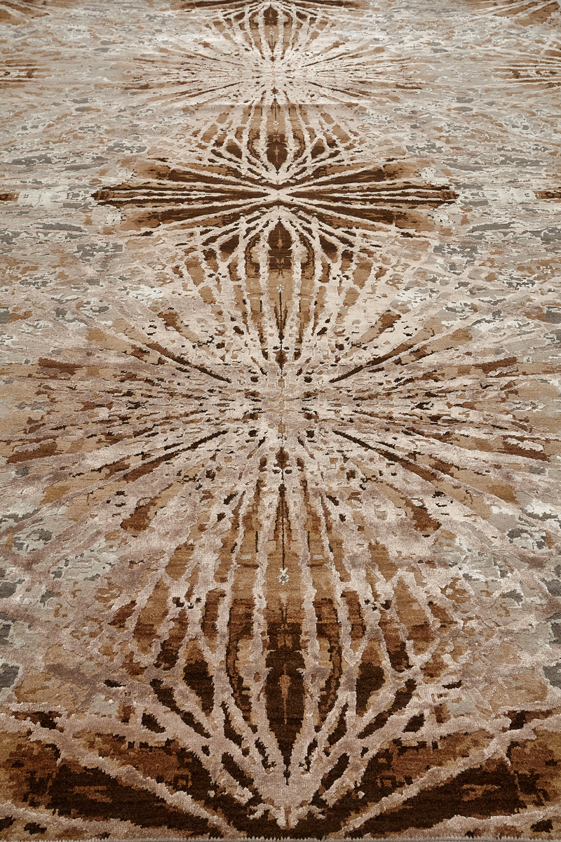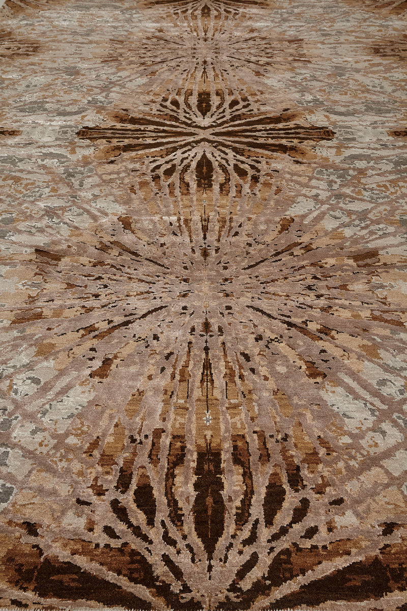 Дизайн ковров напоминает современные полотна художников-абстракционистов и производит столь же яркое и незабываемое впечатление в интерьере. Живописный эффект и необычная фактура зависят от выбора материала: натуральной шерсти, шёлка и от их сочетаний друг с другом. Ковры ткутся вручную в лучших мастерских Индии и Пакистана.
