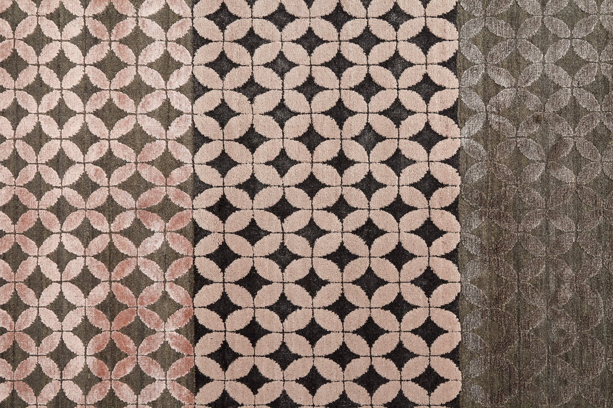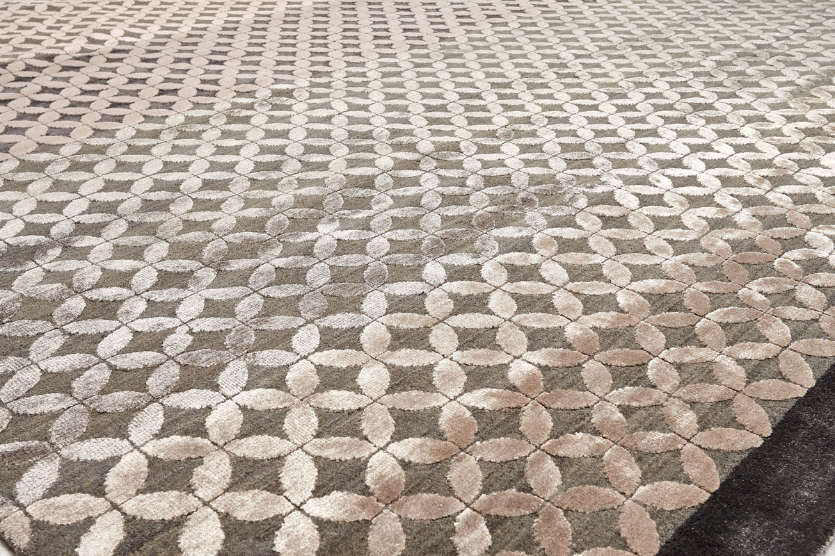 Крупные рисунки в виде линий и фигур на фактурной поверхности ковра превращаются в выразительные композиции. Они акцентируют на себе внимание и добавляют динамики в современный интерьер. Комбинации разных фигур и повторяющийся орнамент задают ритмическую основу пространству, привносят в него оригинальные оптические иллюзии.