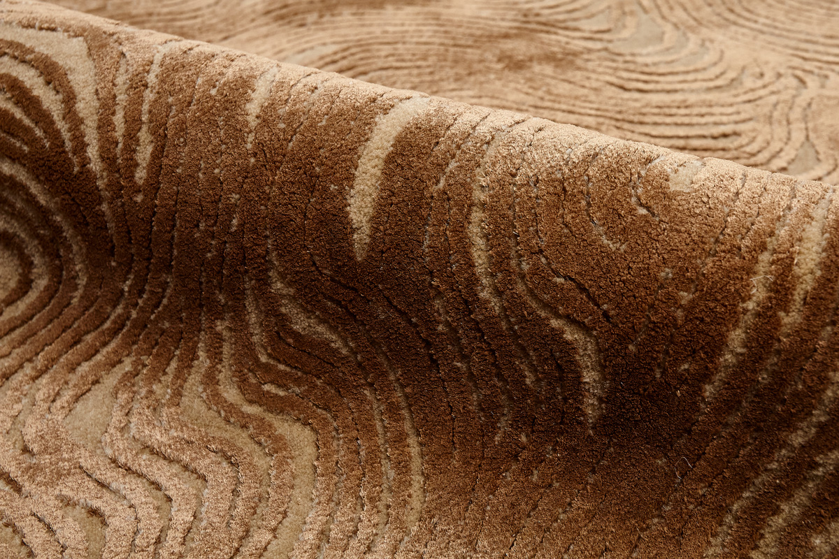 Дизайн ковров напоминает современные полотна художников-абстракционистов и производит столь же яркое и незабываемое впечатление в интерьере. Живописный эффект и необычная фактура зависят от выбора материала: натуральной шерсти, шёлка и от их сочетаний друг с другом. Ковры ткутся вручную в лучших мастерских Индии и Пакистана.