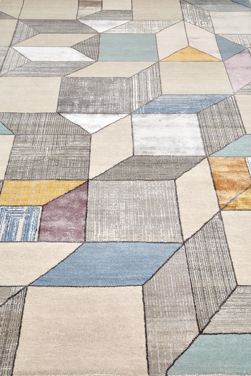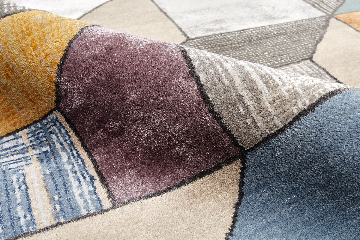 Крупные рисунки в виде линий и фигур на фактурной поверхности ковра превращаются в выразительные композиции. Они акцентируют на себе внимание и добавляют динамики в современный интерьер. Комбинации разных фигур и повторяющийся орнамент задают ритмическую основу пространству, привносят в него оригинальные оптические иллюзии.