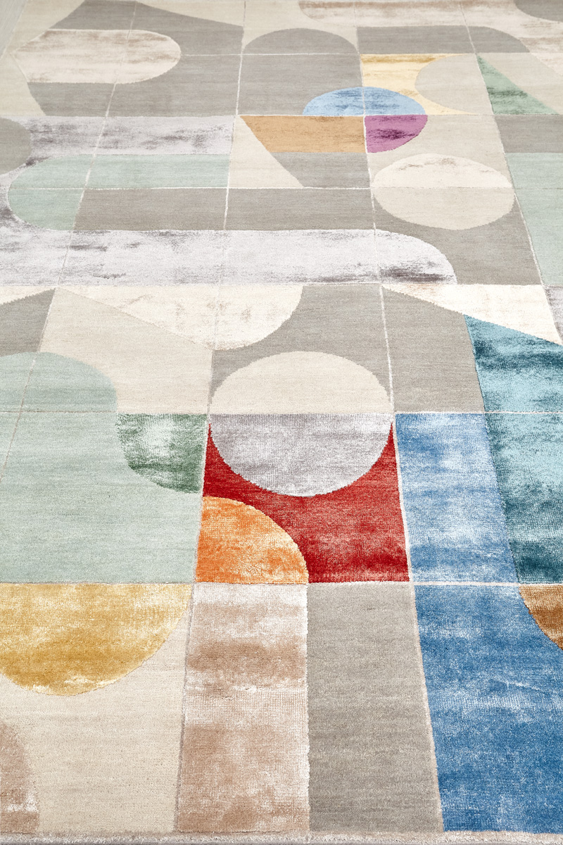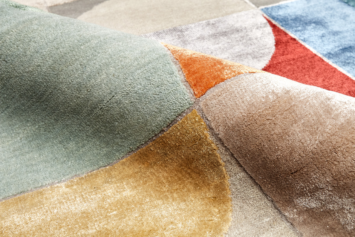 Крупные рисунки в виде линий и фигур на фактурной поверхности ковра превращаются в выразительные композиции. Они акцентируют на себе внимание и добавляют динамики в современный интерьер. Комбинации разных фигур и повторяющийся орнамент задают ритмическую основу пространству, привносят в него оригинальные оптические иллюзии.