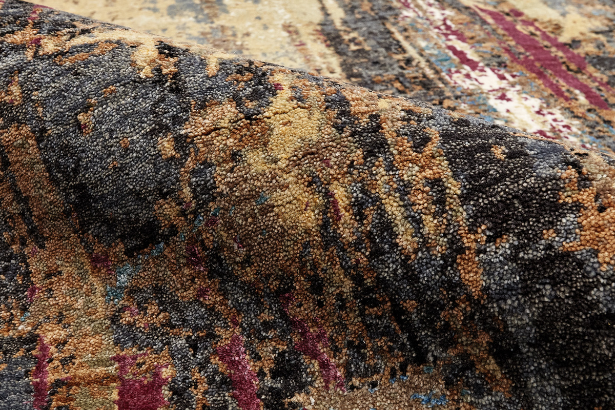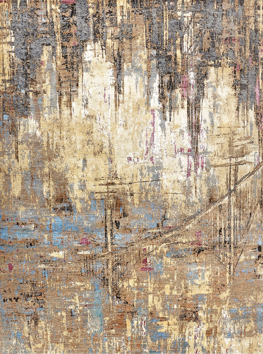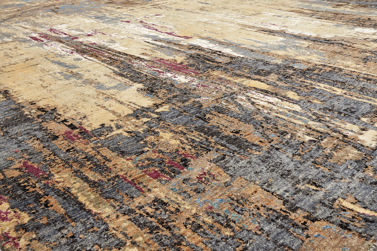Дизайн ковров напоминает современные полотна художников-абстракционистов и производит столь же яркое и незабываемое впечатление в интерьере. Живописный эффект и необычная фактура зависят от выбора материала: натуральной шерсти, шёлка и от их сочетаний друг с другом. Ковры ткутся вручную в лучших мастерских Индии и Пакистана.