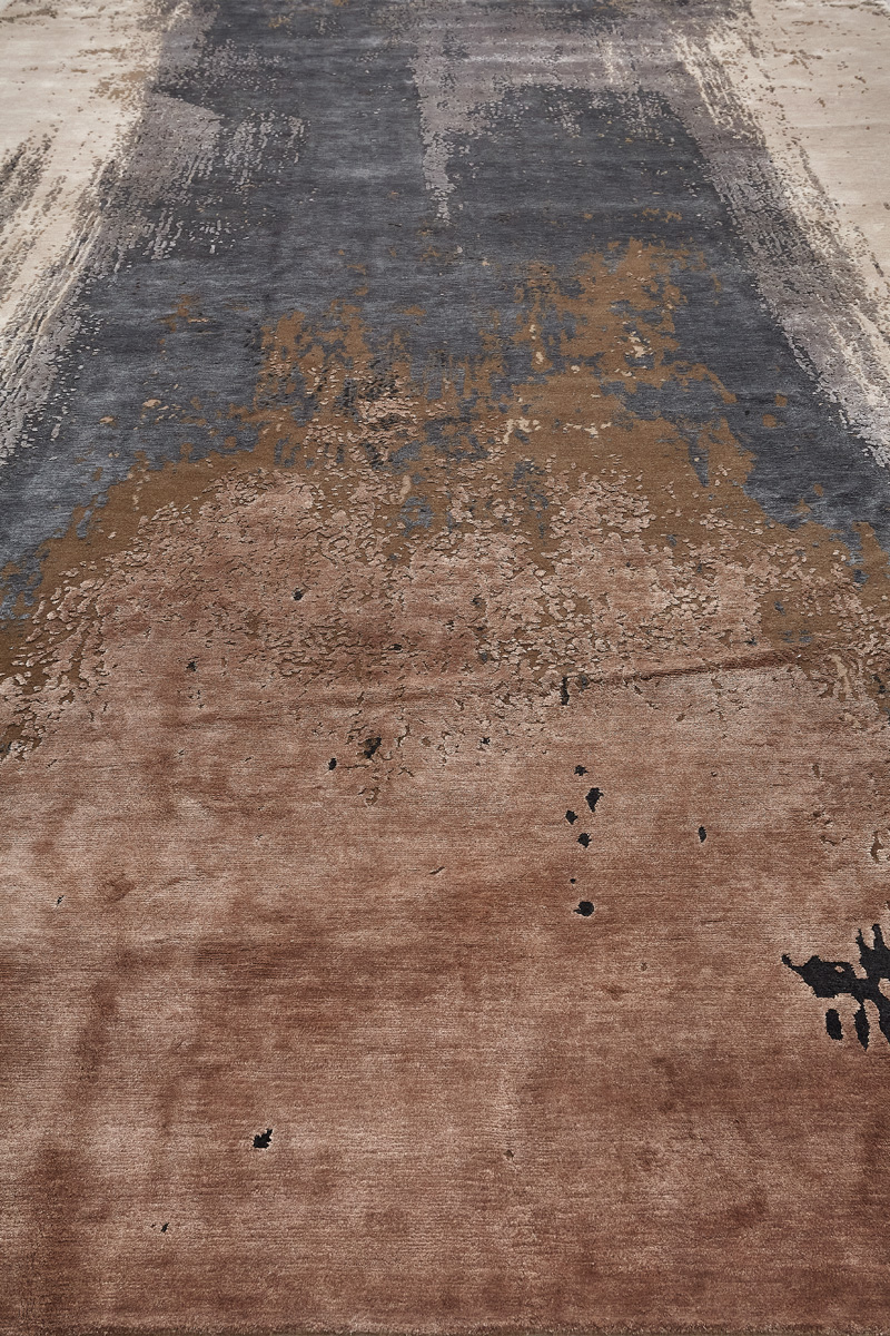 Дизайн ковров напоминает современные полотна художников-абстракционистов и производит столь же яркое и незабываемое впечатление в интерьере. Живописный эффект и необычная фактура зависят от выбора материала: натуральной шерсти, шёлка и от их сочетаний друг с другом. Ковры ткутся вручную в лучших мастерских Индии и Пакистана.