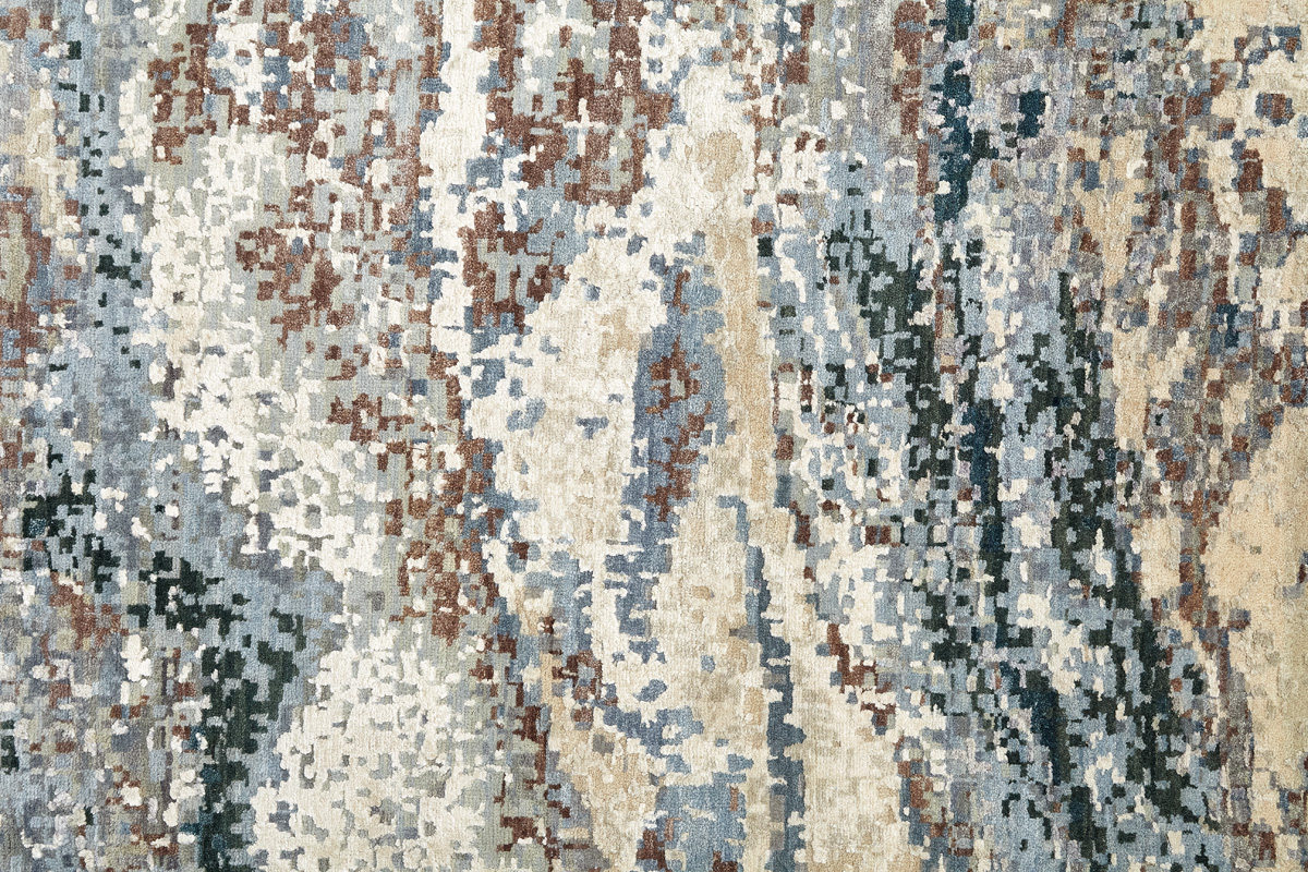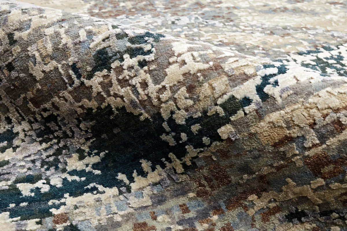 Дизайн ковров напоминает современные полотна художников-абстракционистов и производит столь же яркое и незабываемое впечатление в интерьере. Живописный эффект и необычная фактура зависят от выбора материала: натуральной шерсти, шёлка и от их сочетаний друг с другом. Ковры ткутся вручную в лучших мастерских Индии и Пакистана.