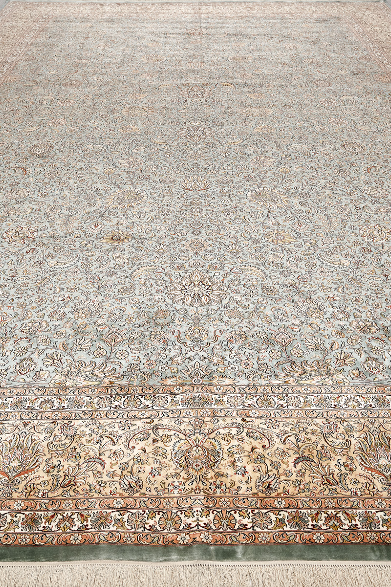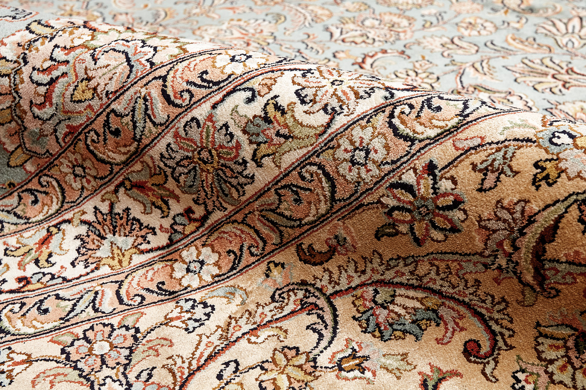Ковры из коллекции Кашмир ткутся по традиционной технологии из нежнейшего кашмирского шелка. Лучшие произведения индийских мастеров отличает высокая узелковая плотность, прочность и яркость цветов.