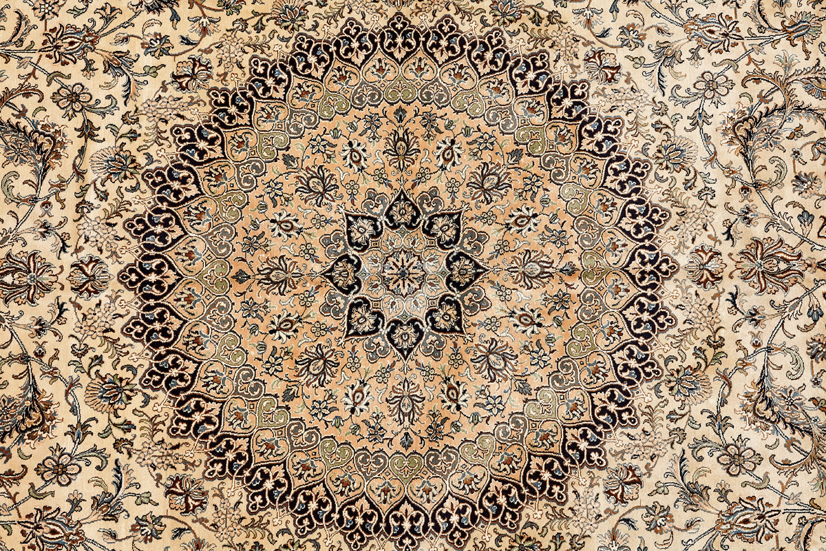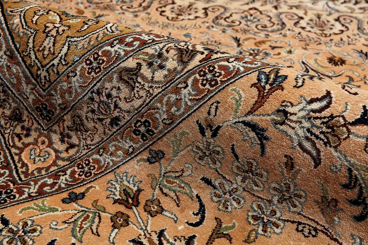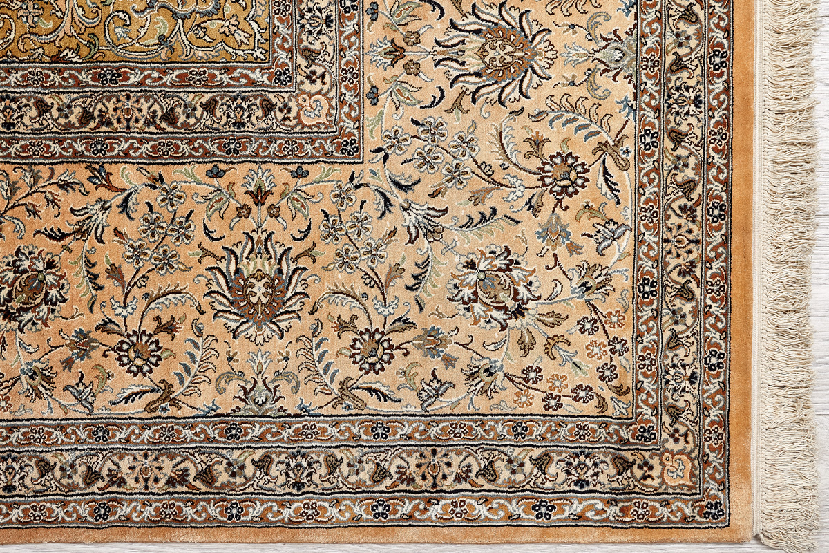 Ковры из коллекции Кашмир ткутся по традиционной технологии из нежнейшего кашмирского шелка. Лучшие произведения индийских мастеров отличает высокая узелковая плотность, прочность и яркость цветов.
