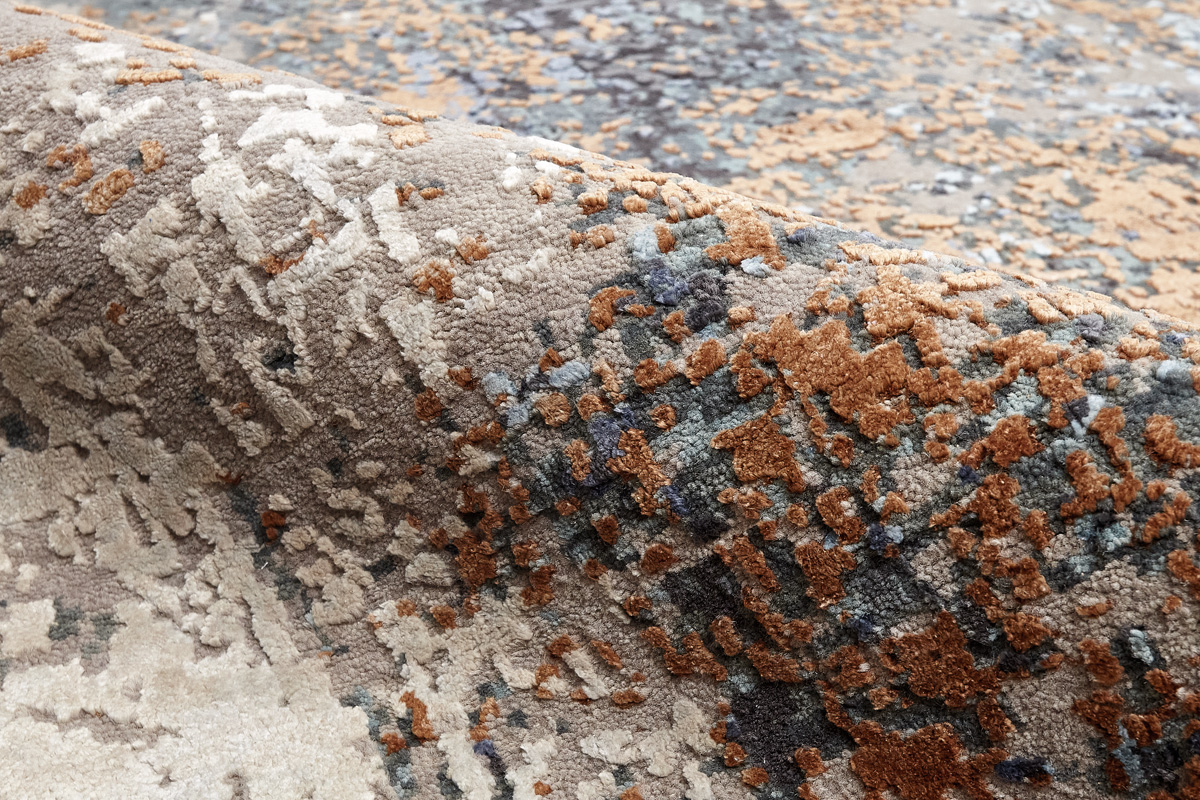 Дизайн ковров напоминает современные полотна художников-абстракционистов и производит столь же яркое и незабываемое впечатление в интерьере. Живописный эффект и необычная фактура зависят от выбора материала: натуральной шерсти, шёлка и от их сочетаний друг с другом. Ковры ткутся вручную в лучших мастерских Индии и Пакистана.