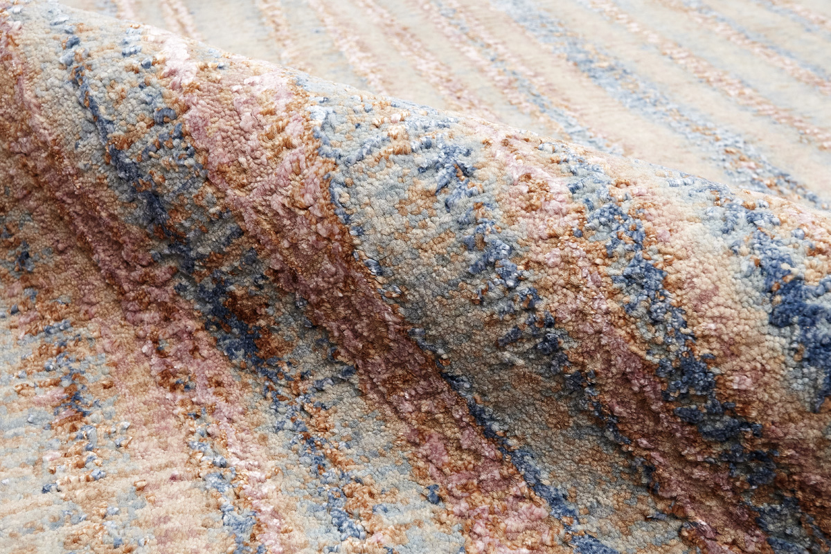 Дизайн ковров напоминает современные полотна художников-абстракционистов и производит столь же яркое и незабываемое впечатление в интерьере. Живописный эффект и необычная фактура зависят от выбора материала: натуральной шерсти, шёлка и от их сочетаний друг с другом. Ковры ткутся вручную в лучших мастерских Индии и Пакистана.