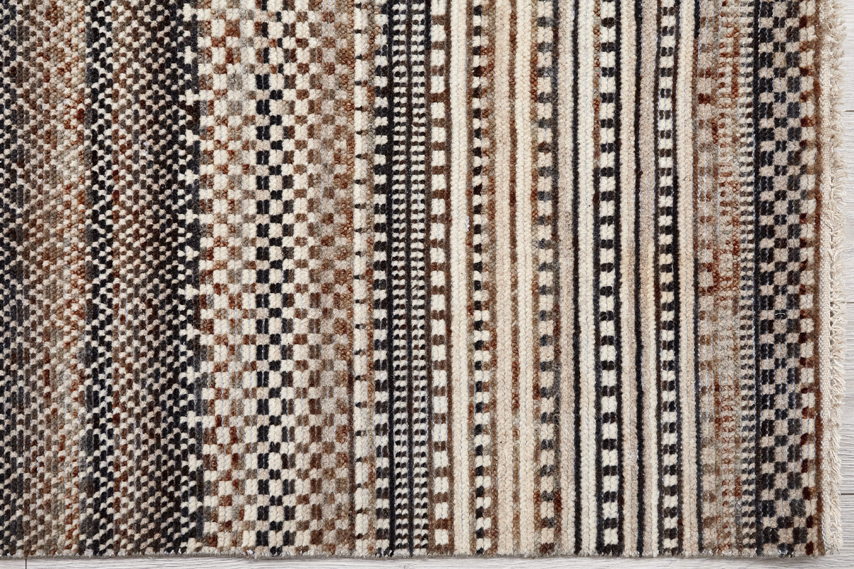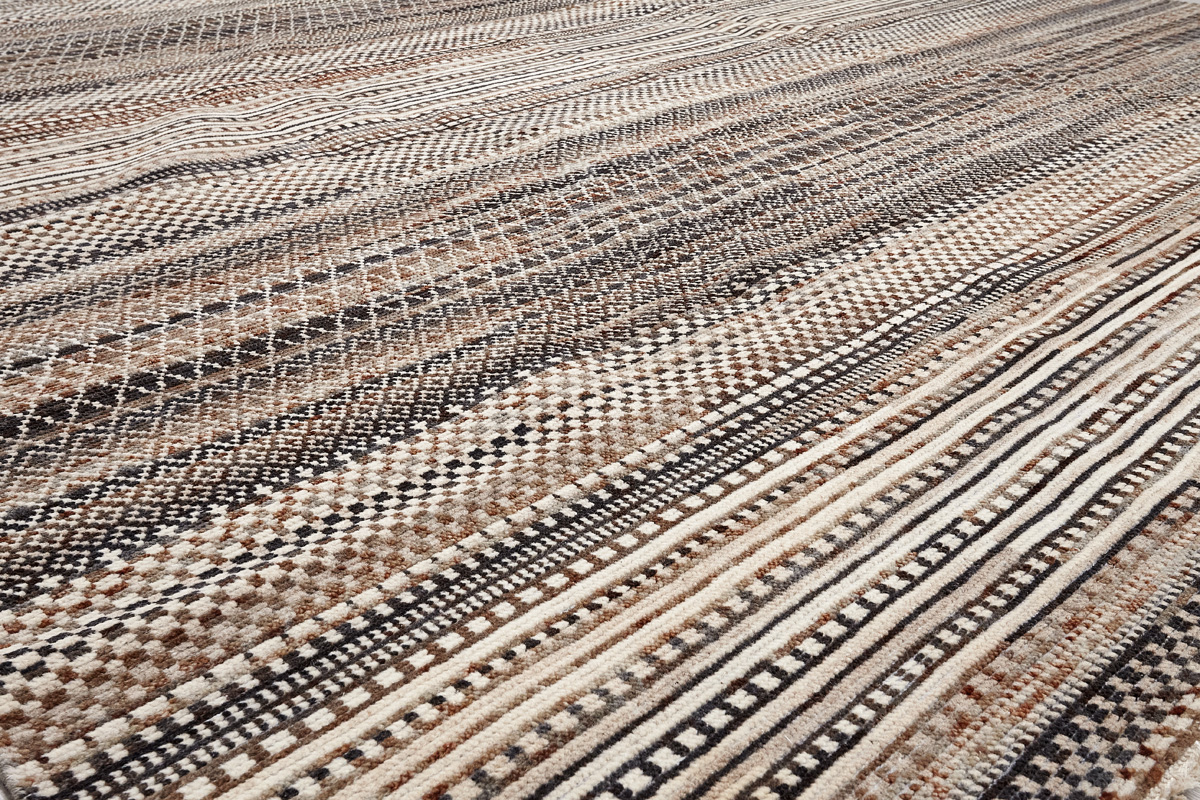 Дизайн ковров напоминает современные полотна художников-абстракционистов и производит столь же яркое и незабываемое впечатление в интерьере. Живописный эффект и необычная фактура зависят от выбора материала: натуральной шерсти, шёлка и от их сочетаний друг с другом. Ковры ткутся вручную в лучших мастерских Индии и Пакистана.