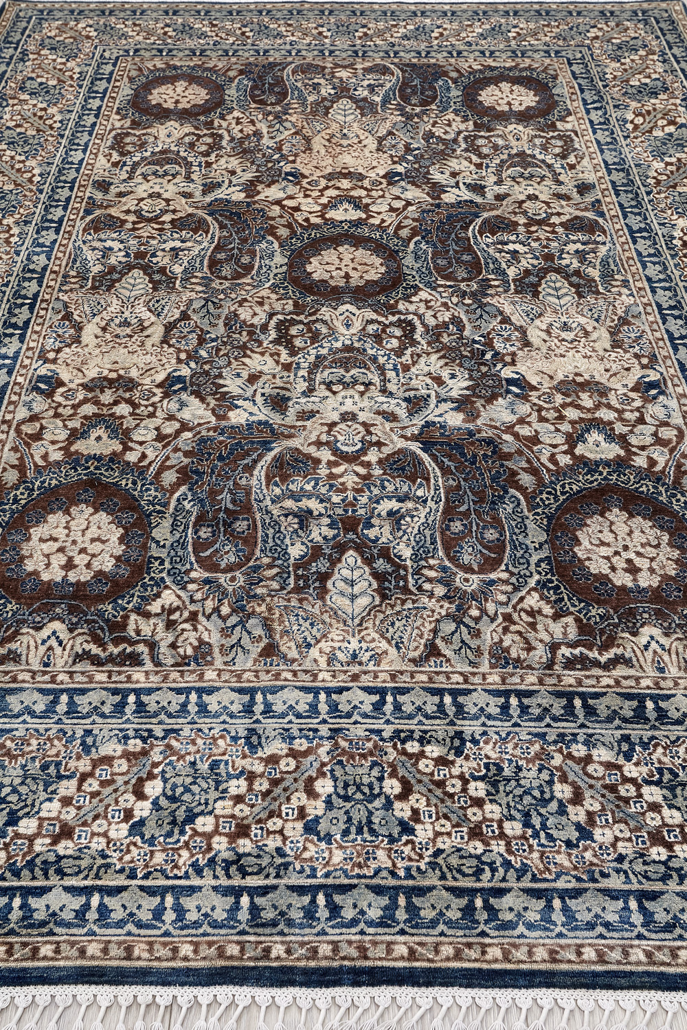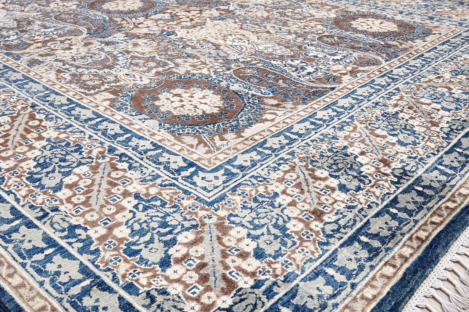 Родина этих ковров Индия и Пакистан. Чтобы создать такое произведение искусства у мастеров уходит от одного года до двух лет. Плотность ковров, в зависимости от размера, составляет от 150 000 до 400 000 узлов на квадратный метр.