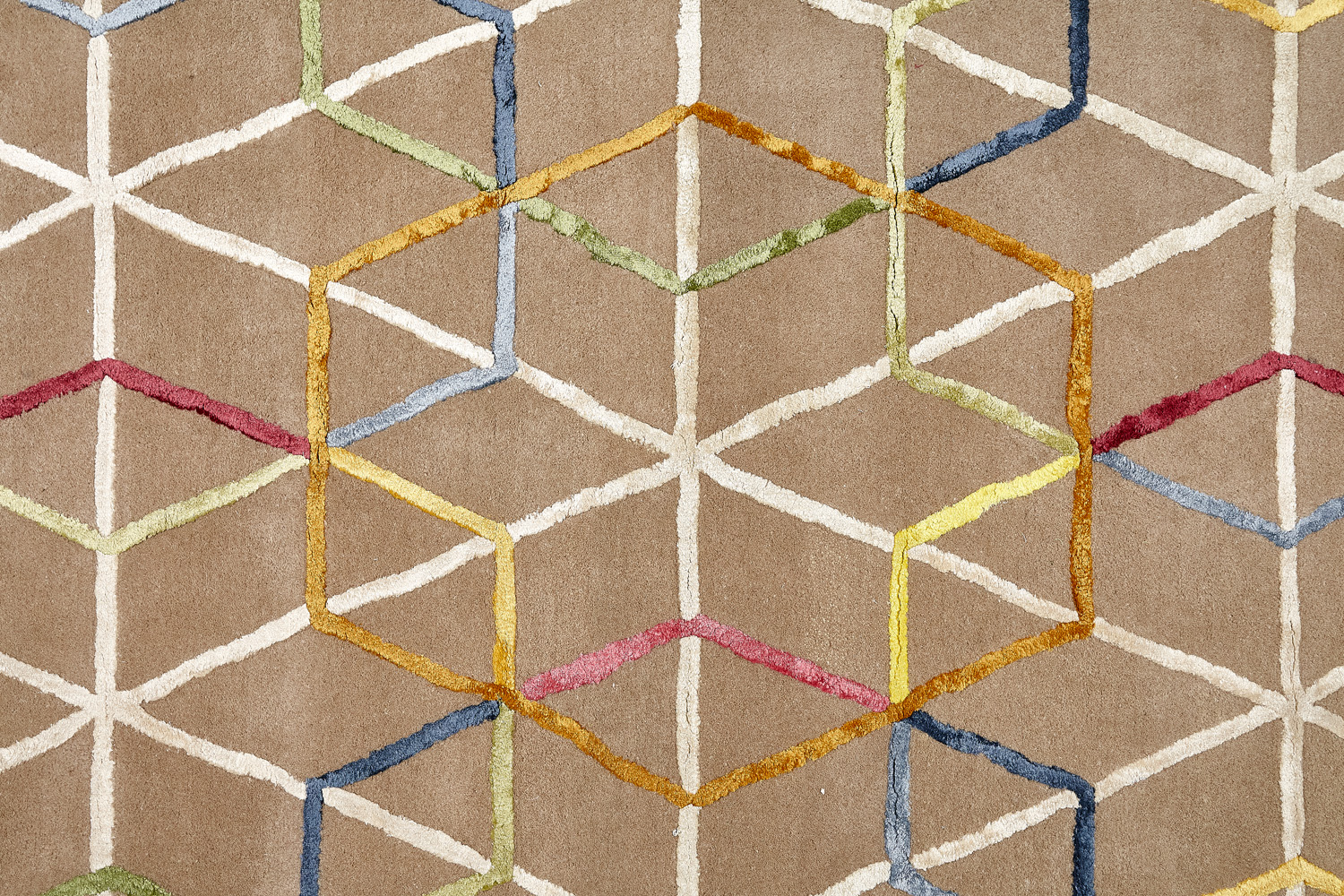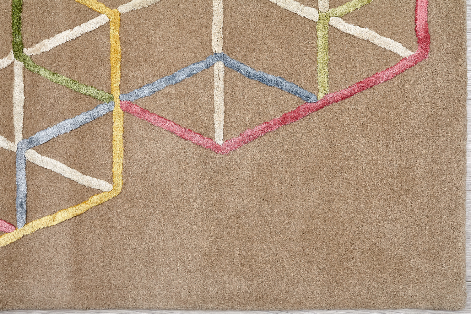 Ковры изготовлены методом ручного тафтинга. Эта технология позволяет создавать объемный рисунок и мягкие переходы цвета. Почитатели коллекции Shine ценят богатую фактуру ковров в сочетании с натуральными материалами и превосходной техникой в исполнении индийских мастеров.