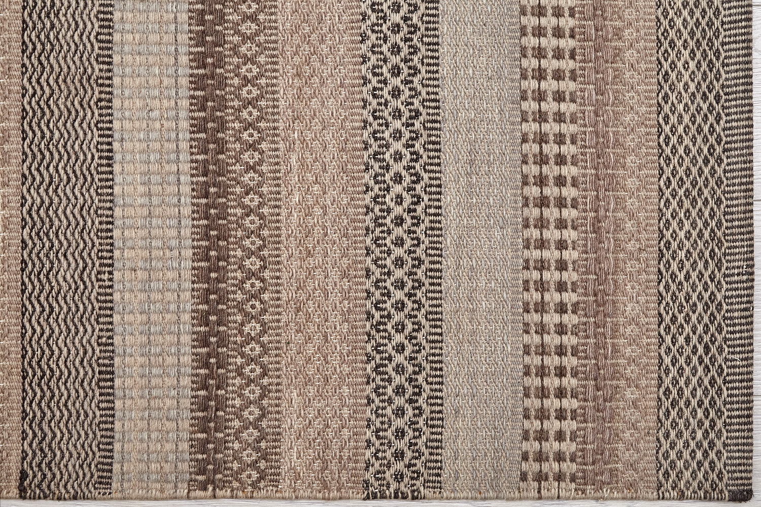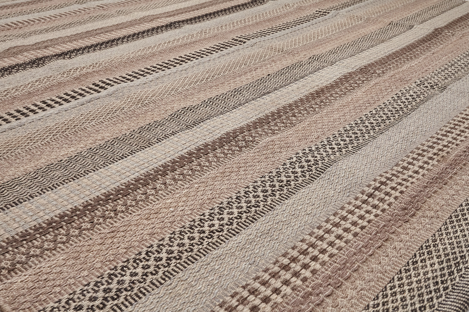 Узор ковров из коллекции Килим создаётся взаимодействием нитей утока и нитей основы, благодаря чему получается геометрический узор.