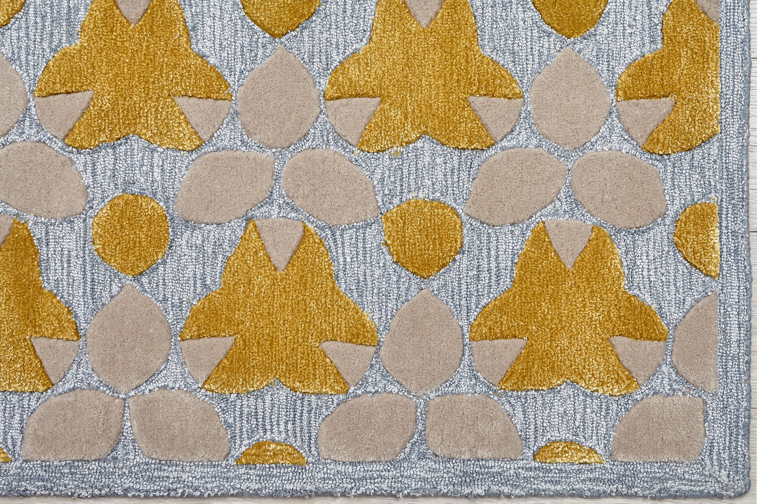 Ковры изготовлены методом ручного тафтинга. Эта технология позволяет создавать объемный рисунок и мягкие переходы цвета. Почитатели коллекции Shine ценят богатую фактуру ковров в сочетании с натуральными материалами и превосходной техникой в исполнении индийских мастеров.