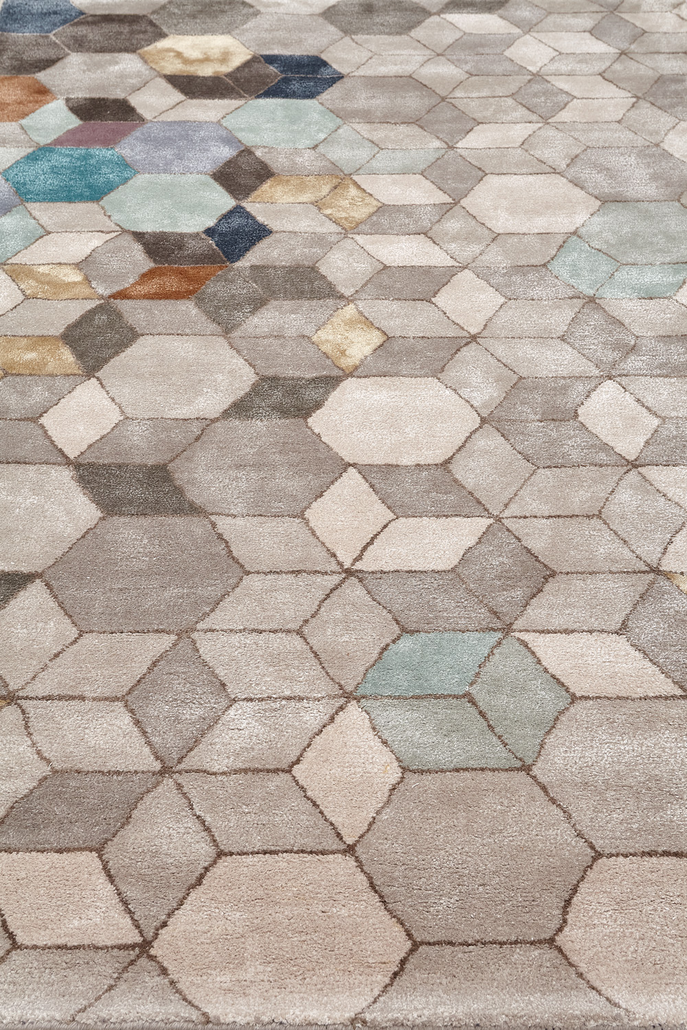 Ковры изготовлены методом ручного тафтинга. Эта технология позволяет создавать объемный рисунок и мягкие переходы цвета. Почитатели коллекции Shine ценят богатую фактуру ковров в сочетании с натуральными материалами и превосходной техникой в исполнении индийских мастеров.