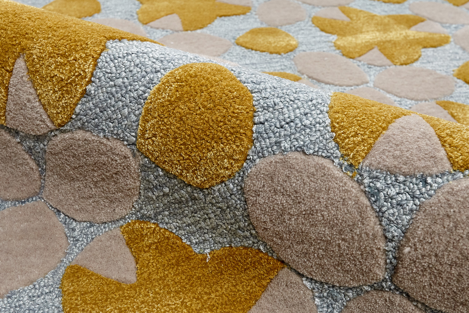 Ковры изготовлены методом ручного тафтинга. Эта технология позволяет создавать объемный рисунок и мягкие переходы цвета. Почитатели коллекции Shine ценят богатую фактуру ковров в сочетании с натуральными материалами и превосходной техникой в исполнении индийских мастеров.