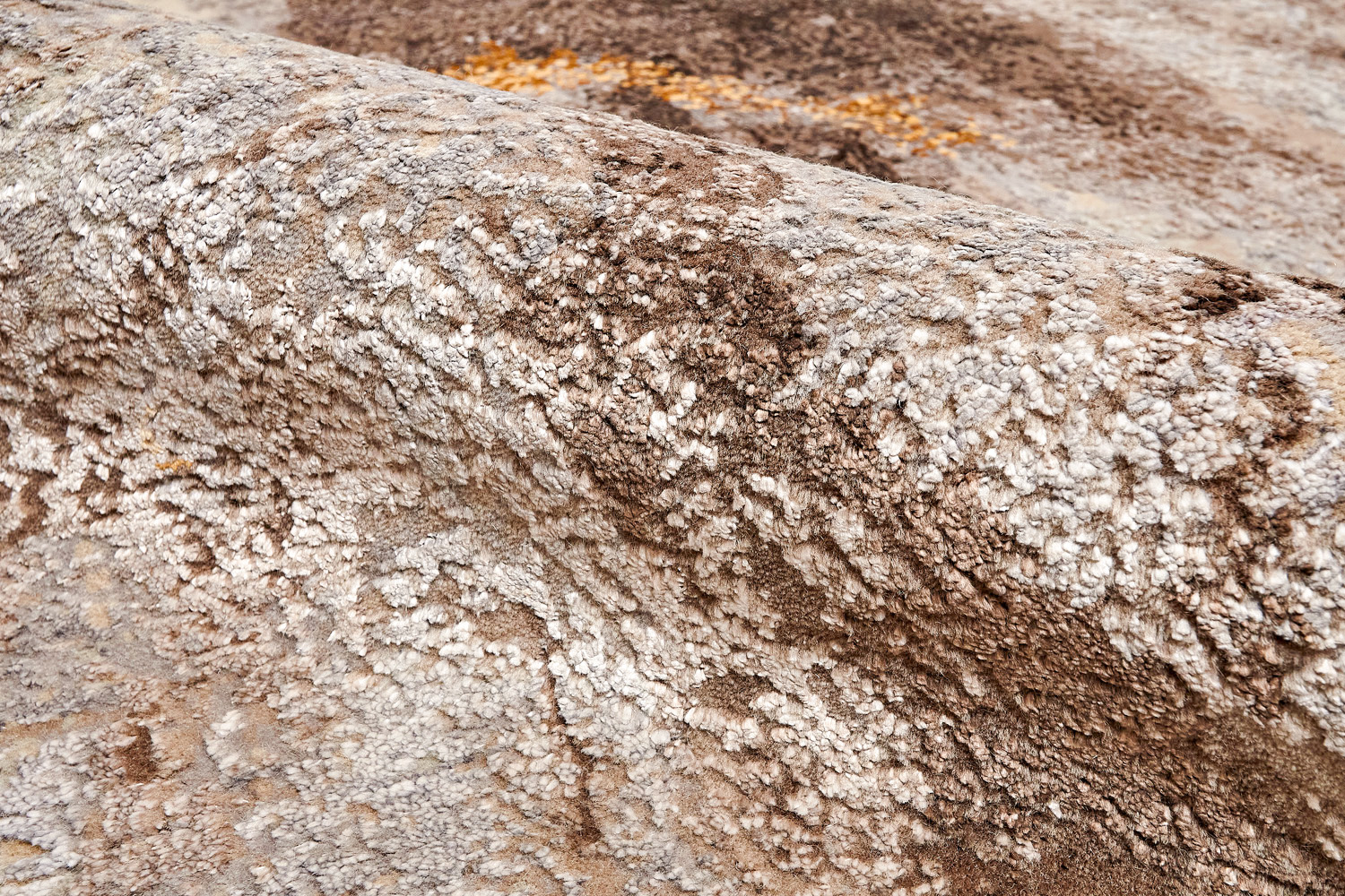 Дизайн ковров напоминает современные полотна художников-абстракционистов и производит столь же яркое и незабываемое впечатление в интерьере. Живописный эффект и необычная фактура зависят от выбора материала: натуральной шерсти, шёлка и от их сочетаний друг с другом. Ковры ткутся вручную в лучших мастерских Индии и Пакистана.