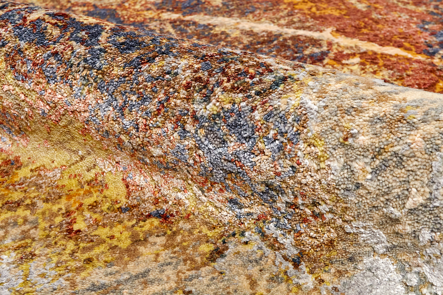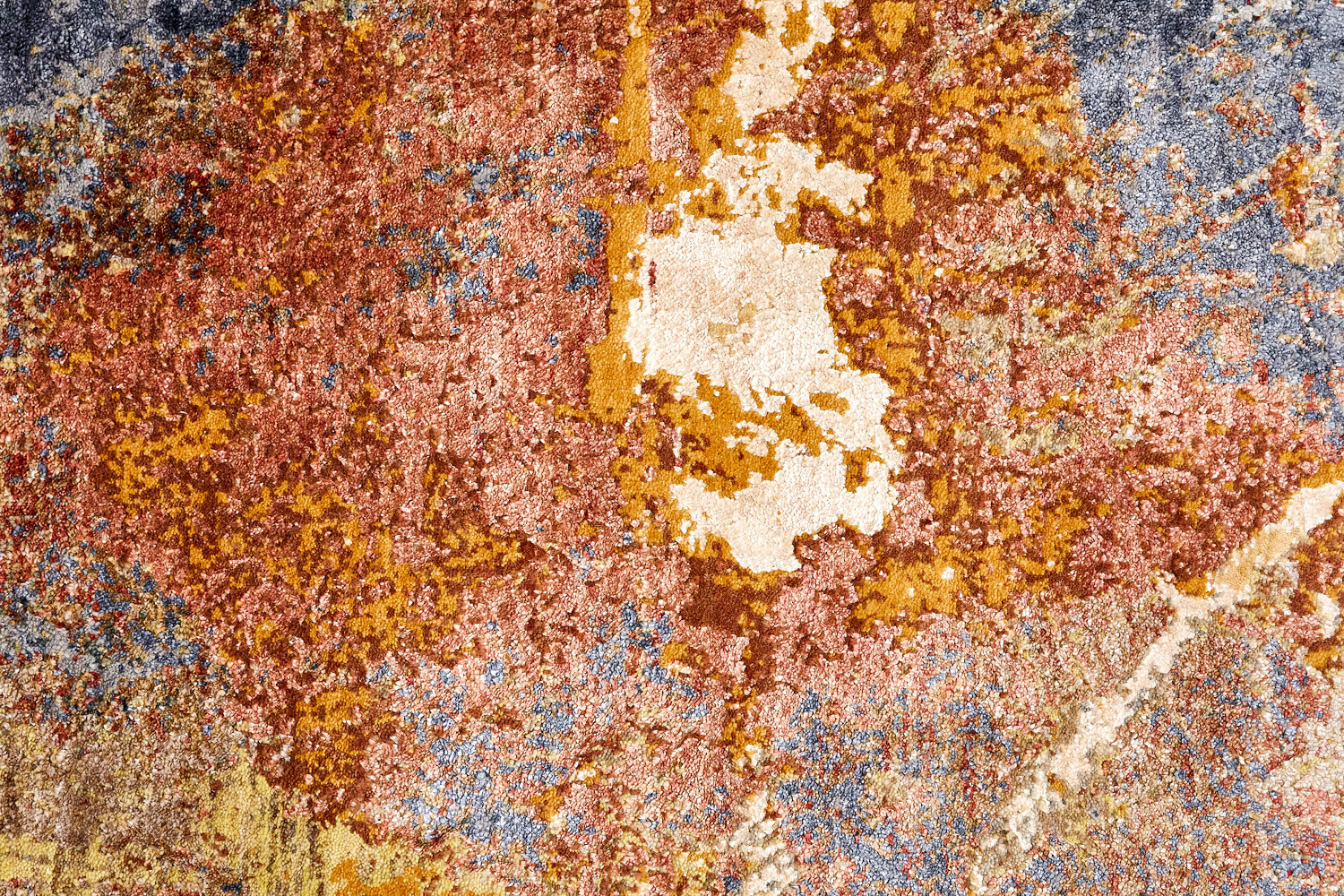 Дизайн ковров напоминает современные полотна художников-абстракционистов и производит столь же яркое и незабываемое впечатление в интерьере. Живописный эффект и необычная фактура зависят от выбора материала: натуральной шерсти, шёлка и от их сочетаний друг с другом. Ковры ткутся вручную в лучших мастерских Индии и Пакистана.