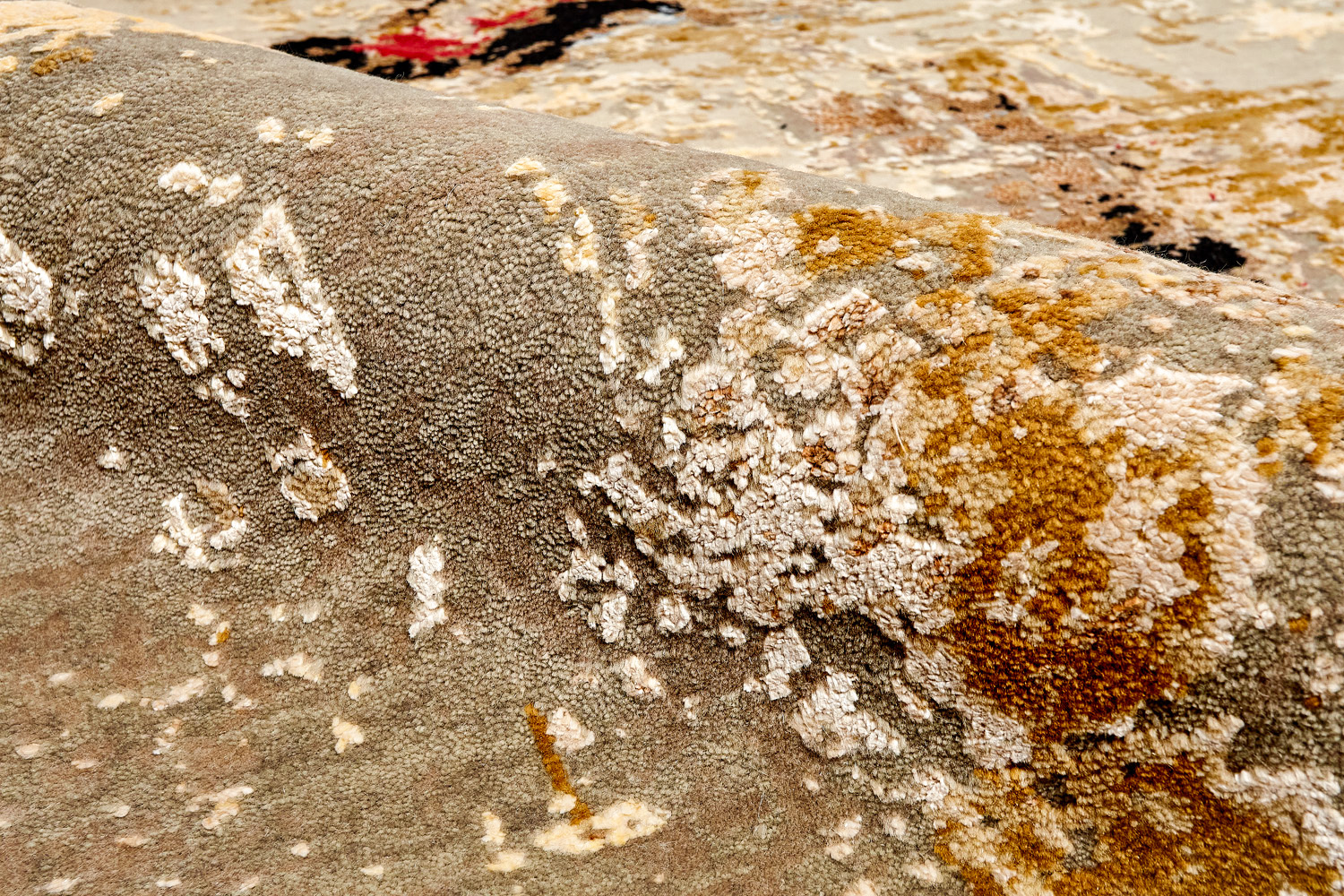 Дизайн ковров напоминает современные полотна художников-абстракционистов и производит столь же яркое и незабываемое впечатление в интерьере. Живописный эффект и необычная фактура зависят от выбора материала: натуральной шерсти, шёлка и от их сочетаний друг с другом. Ковры ткутся вручную в лучших мастерских Индии и Пакистана.