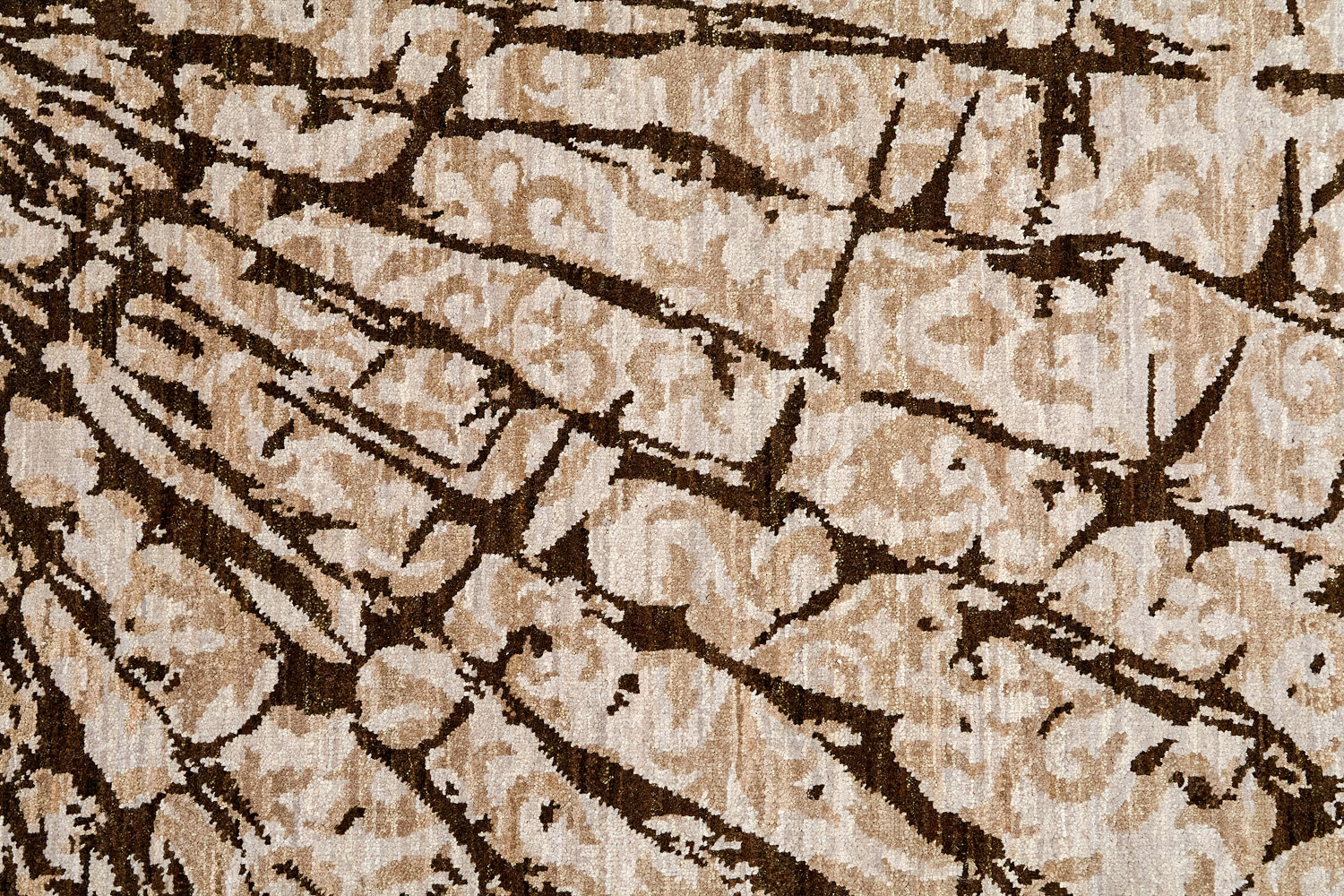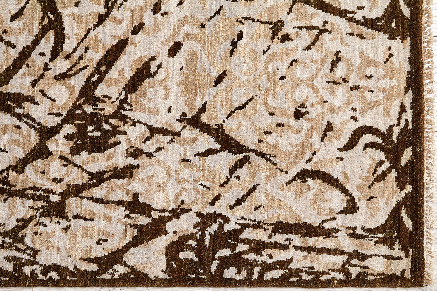 Дизайн ковров напоминает современные полотна художников-абстракционистов и производит столь же яркое и незабываемое впечатление в интерьере. Живописный эффект и необычная фактура зависят от выбора материала: натуральной шерсти, шёлка и от их сочетаний друг с другом. Ковры ткутся вручную в лучших мастерских Индии и Пакистана.